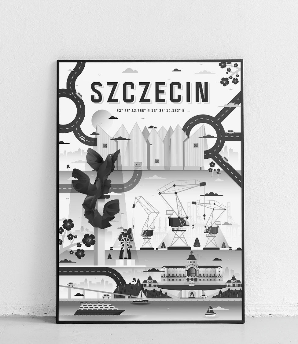 The poster from the "Cities" series presents the greatest symbols of Szczecin, i.e.: