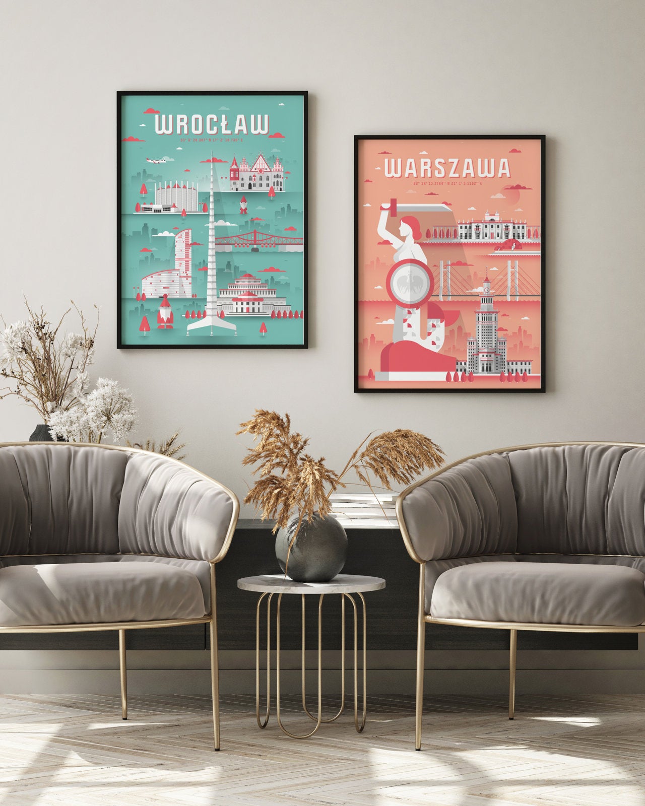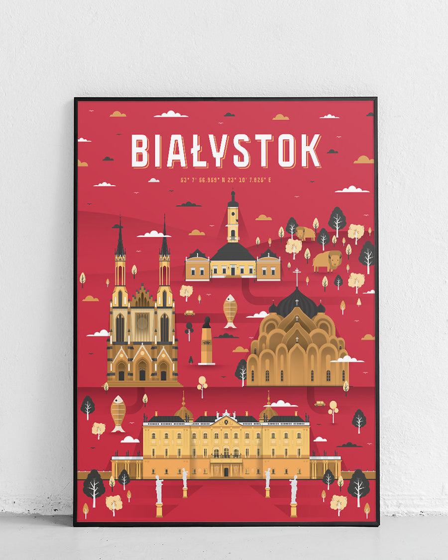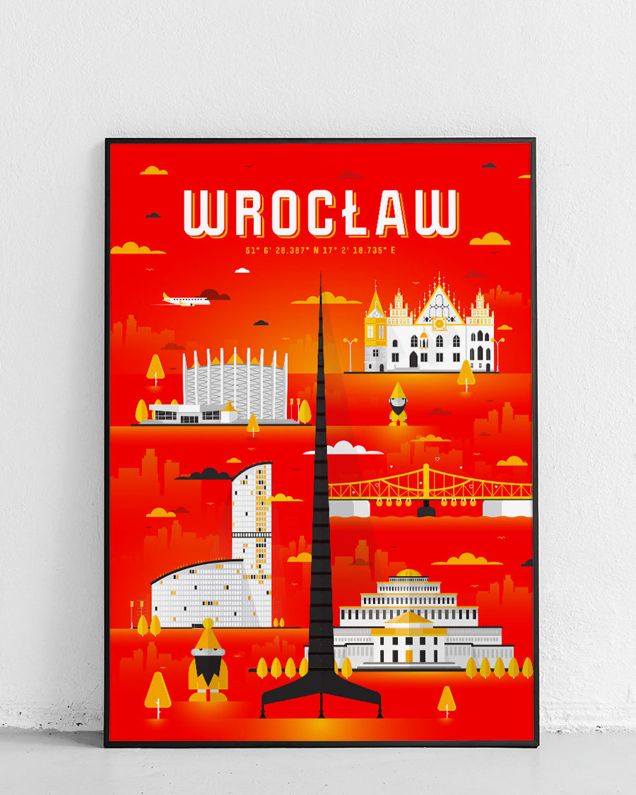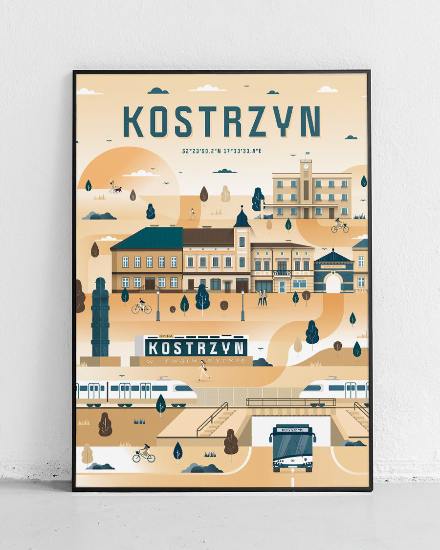 The "Polish Cities" collection is a series of original posters depicting the most beautiful Polish cities – from vibrant Warsaw to intimate, charming towns. Each illustration was designed by Wrocław-based artist Robert Kostrzewa. It's not just decoration, but also a way to express your love for your city.