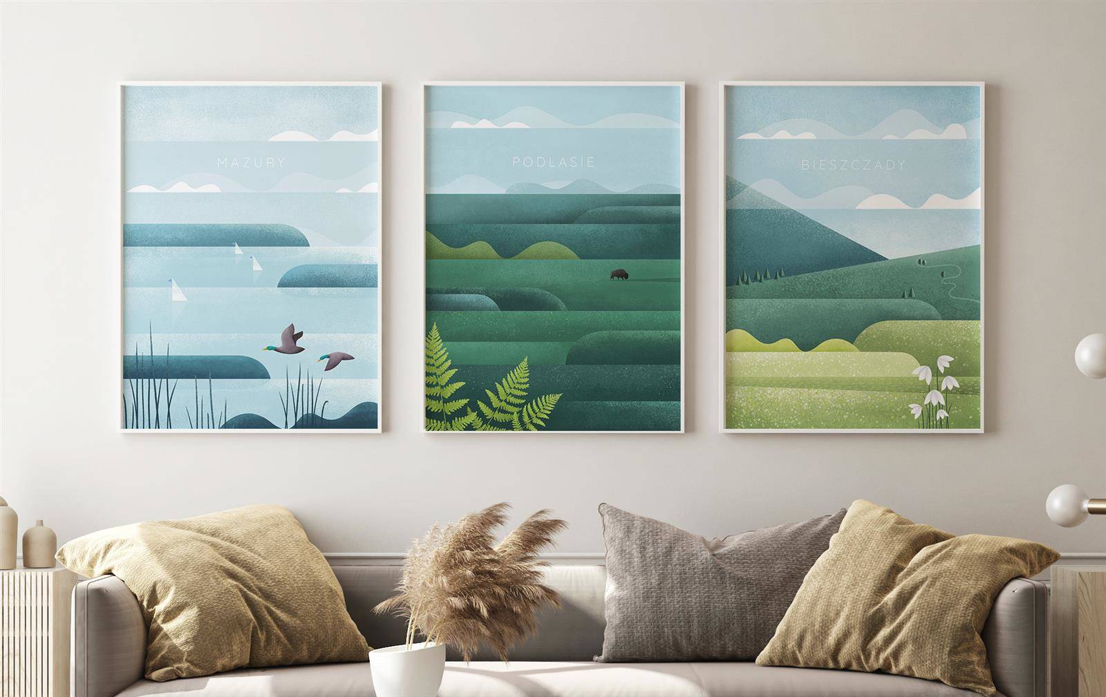 Masuria poster from the REGIONS OF POLAND poster series. A one-of-a-kind collection designed to showcase the most beautiful and picturesque regions of the country. Our posters showcase popular, as well as lesser-known areas of Poland.
