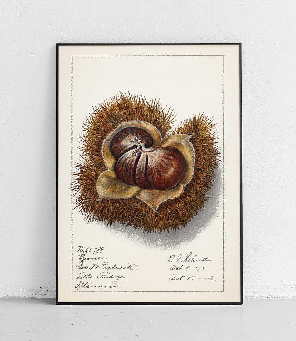 A beautiful poster of a sweet chestnut, perfect for plant and nature lovers.
