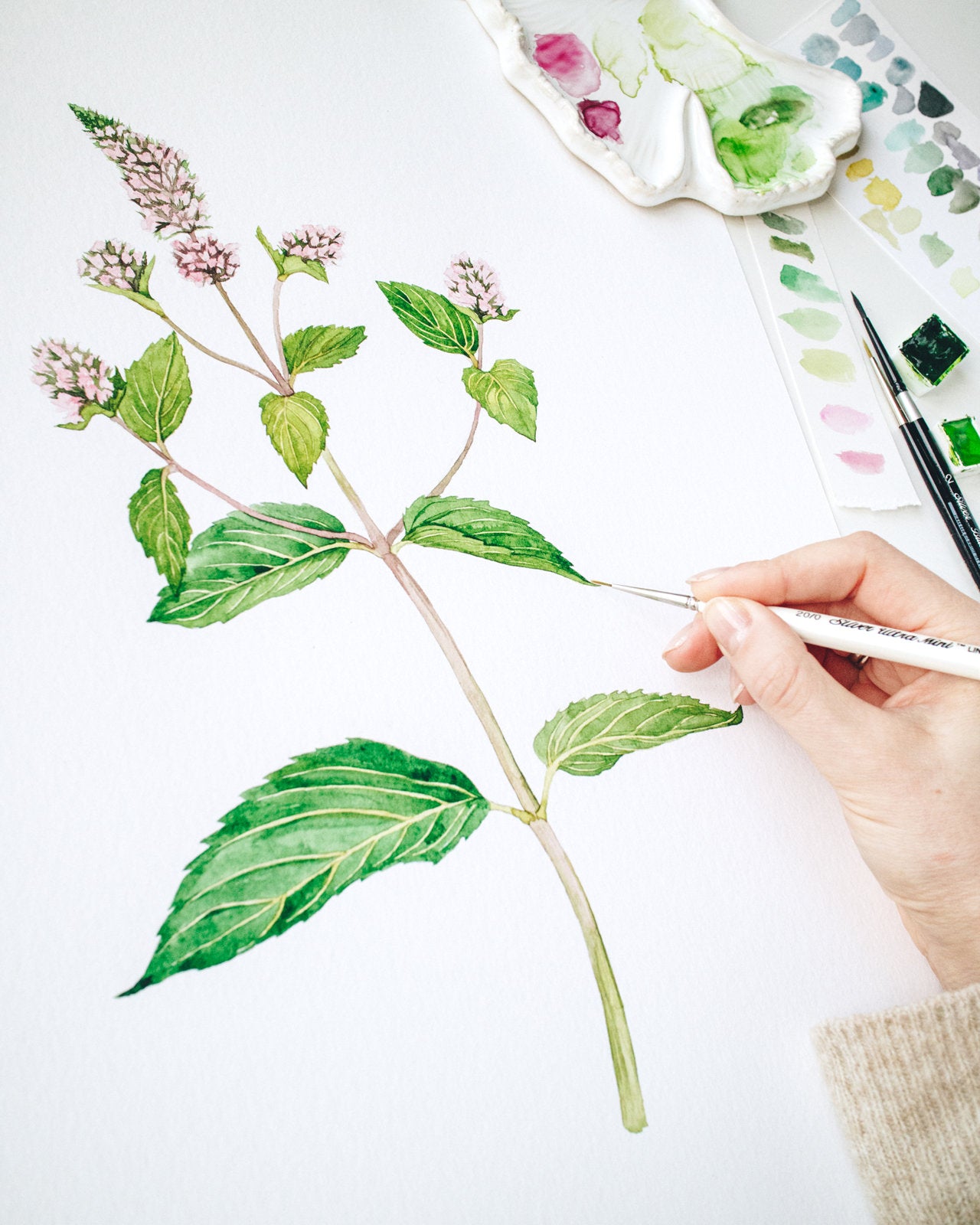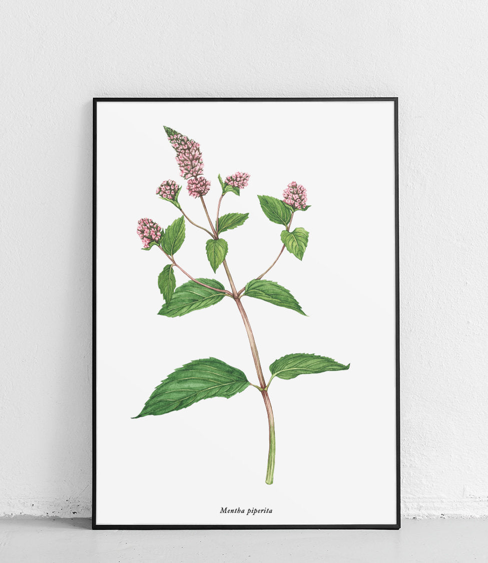 A poster from the "Medicinal Plants" series depicting Mentha ×piperita , or peppermint.