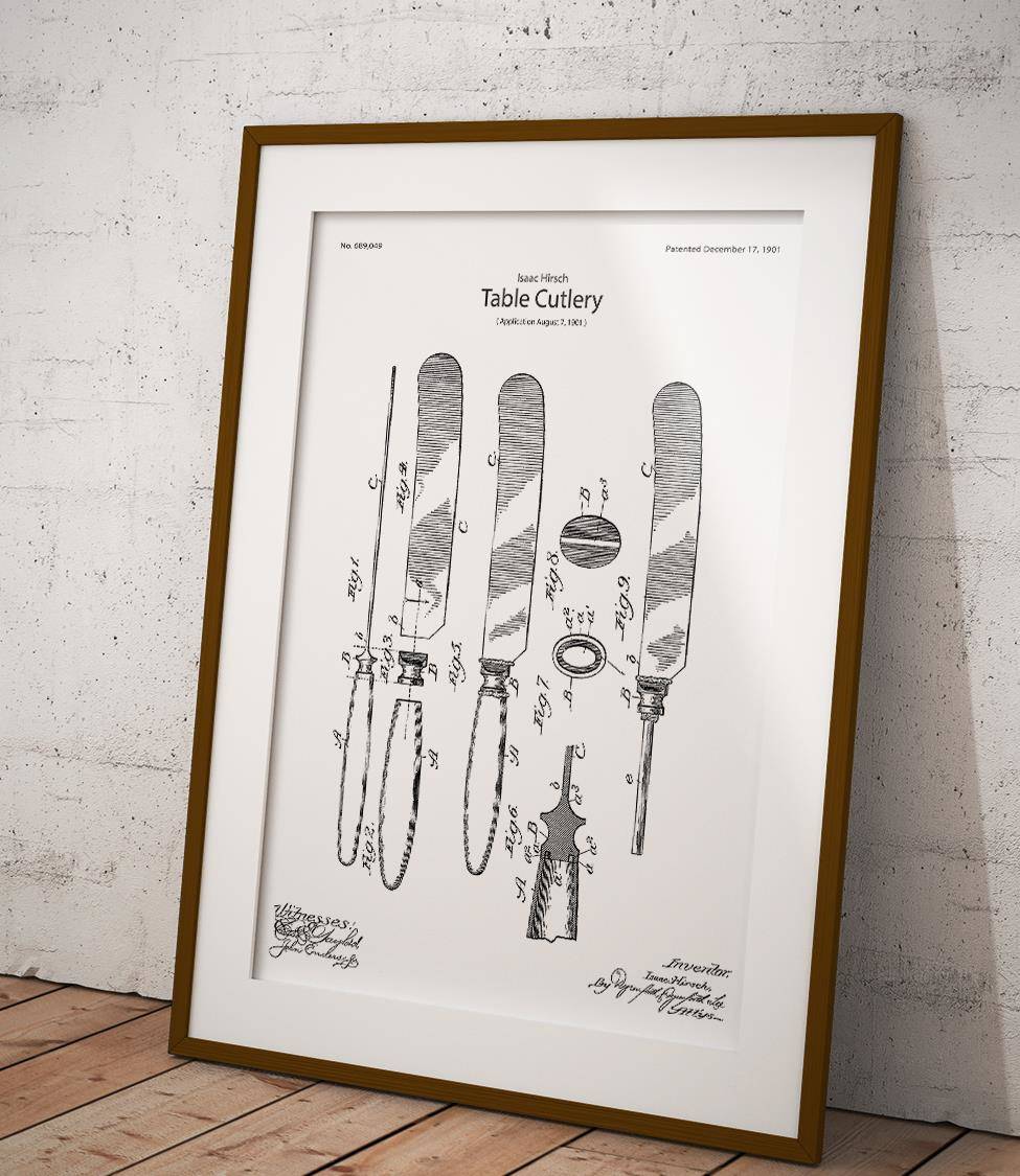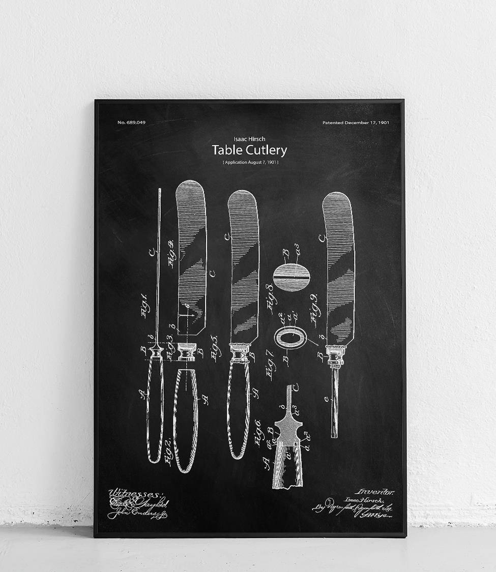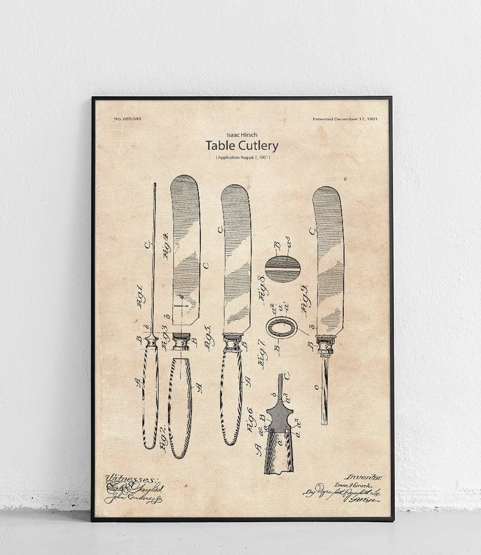 A poster featuring a reproduction of Isaac Hirsch's knife patent.