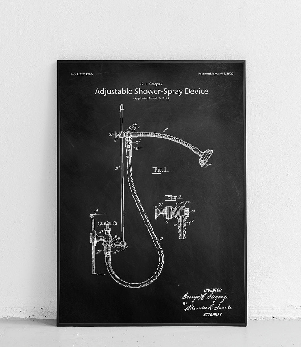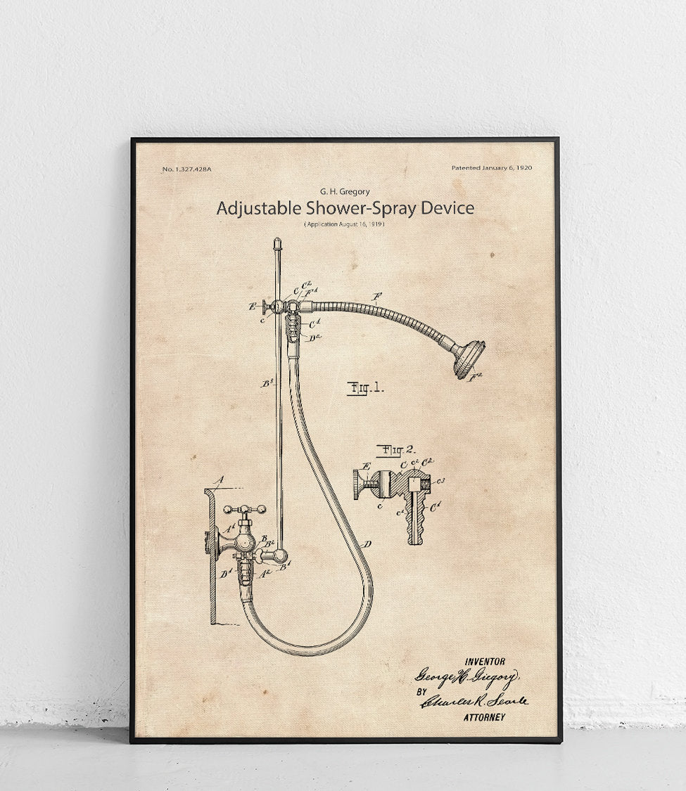 Poster with a reproduction of George H. Gregory's showerhead patent.