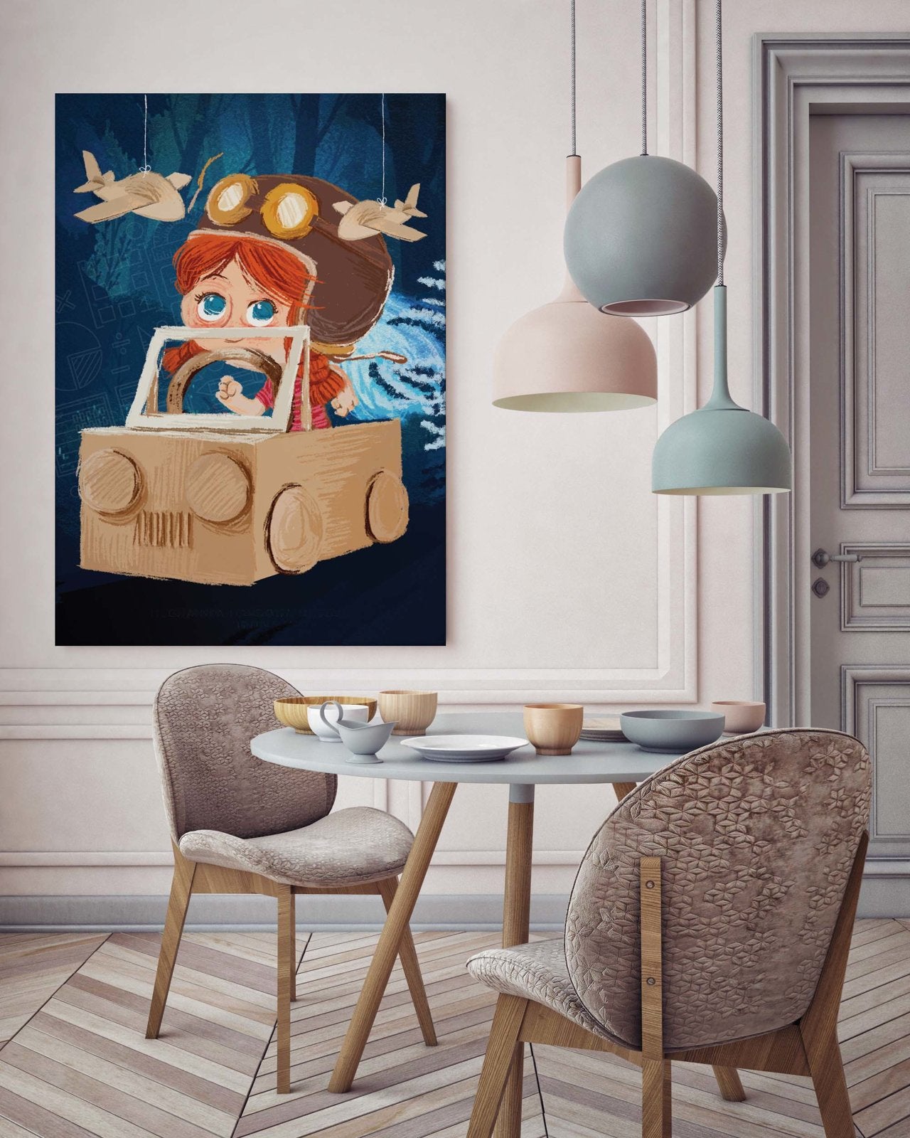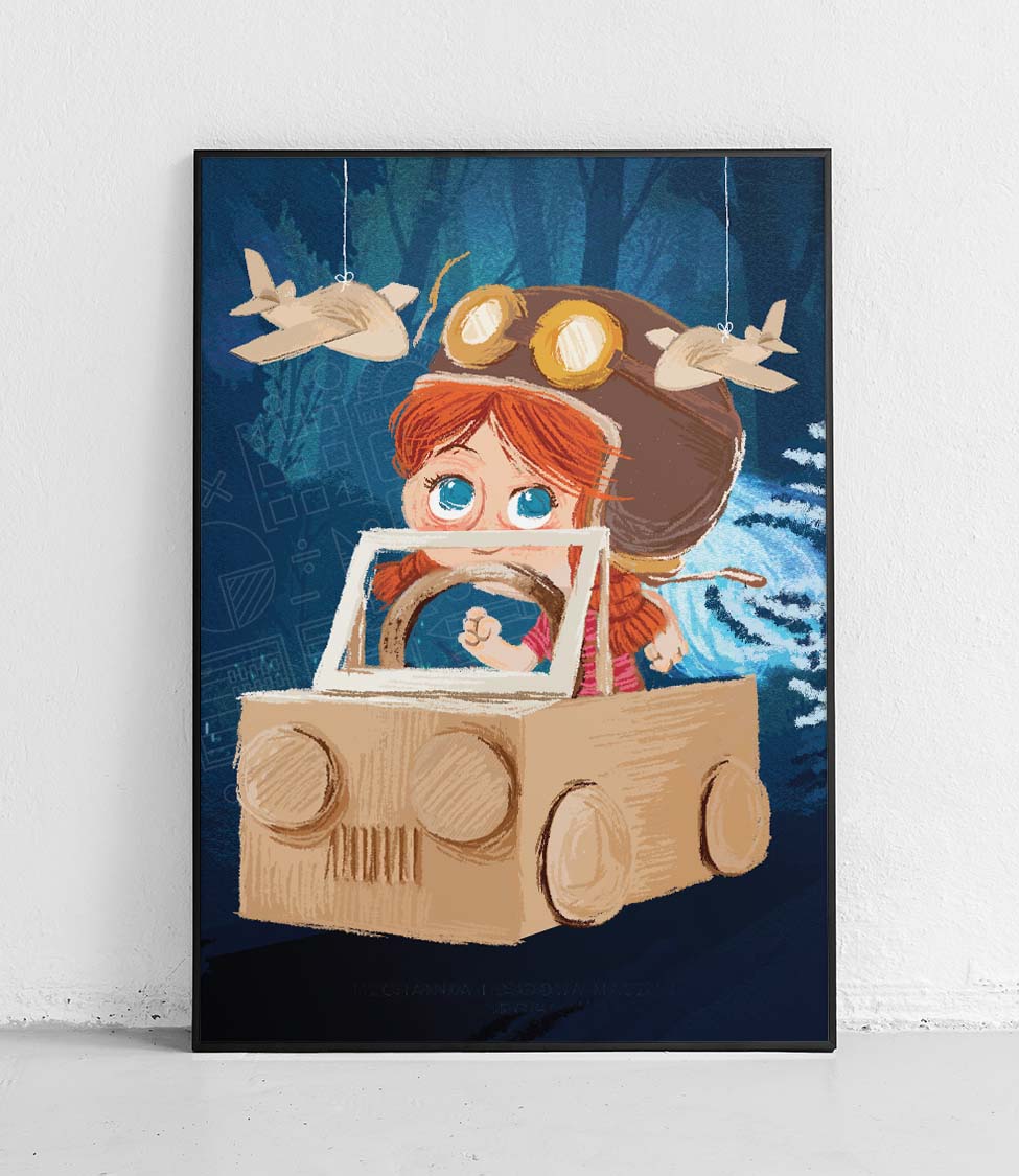 Science Girl - Machine Builder is a poster for children depicting a girl enthusiastically creating machines. Perfect for little explorers and future scientists.