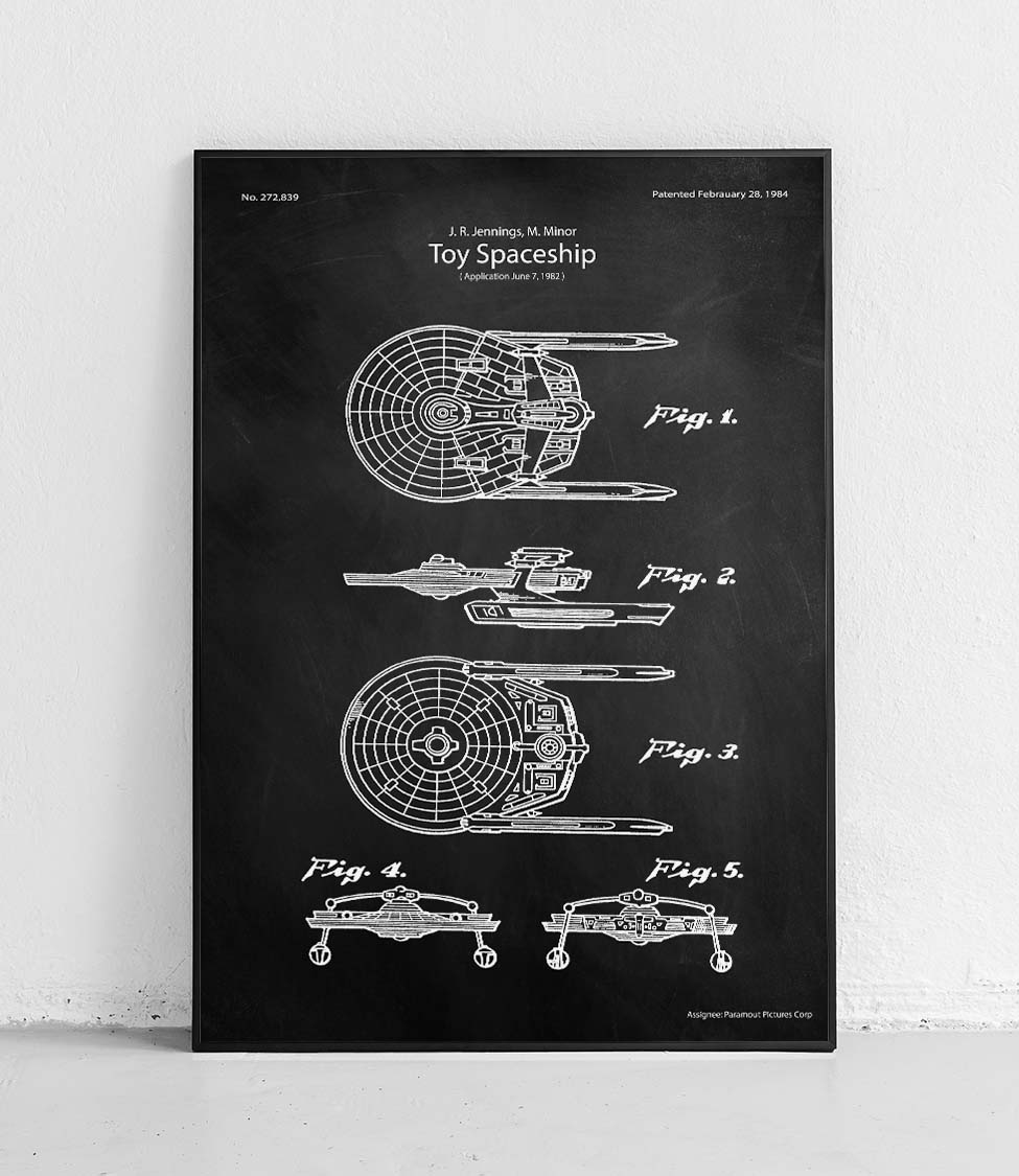 A patent poster featuring the fictional Star Trek Enterprise spaceship by Joseph R. Jennings and Michael Minor.