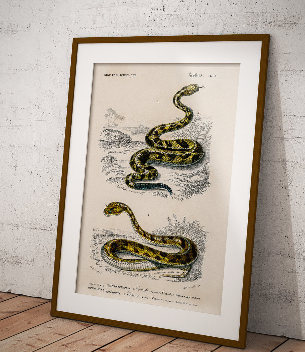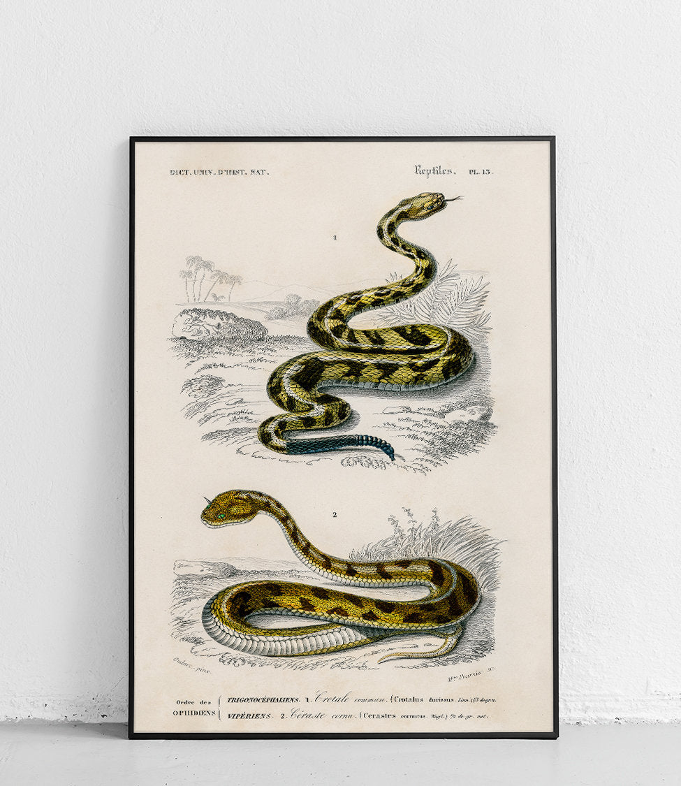 The accompanying illustration depicts a dusky rattlesnake (Crotalus durissus) and a horned viper (Cerastes cerastes).