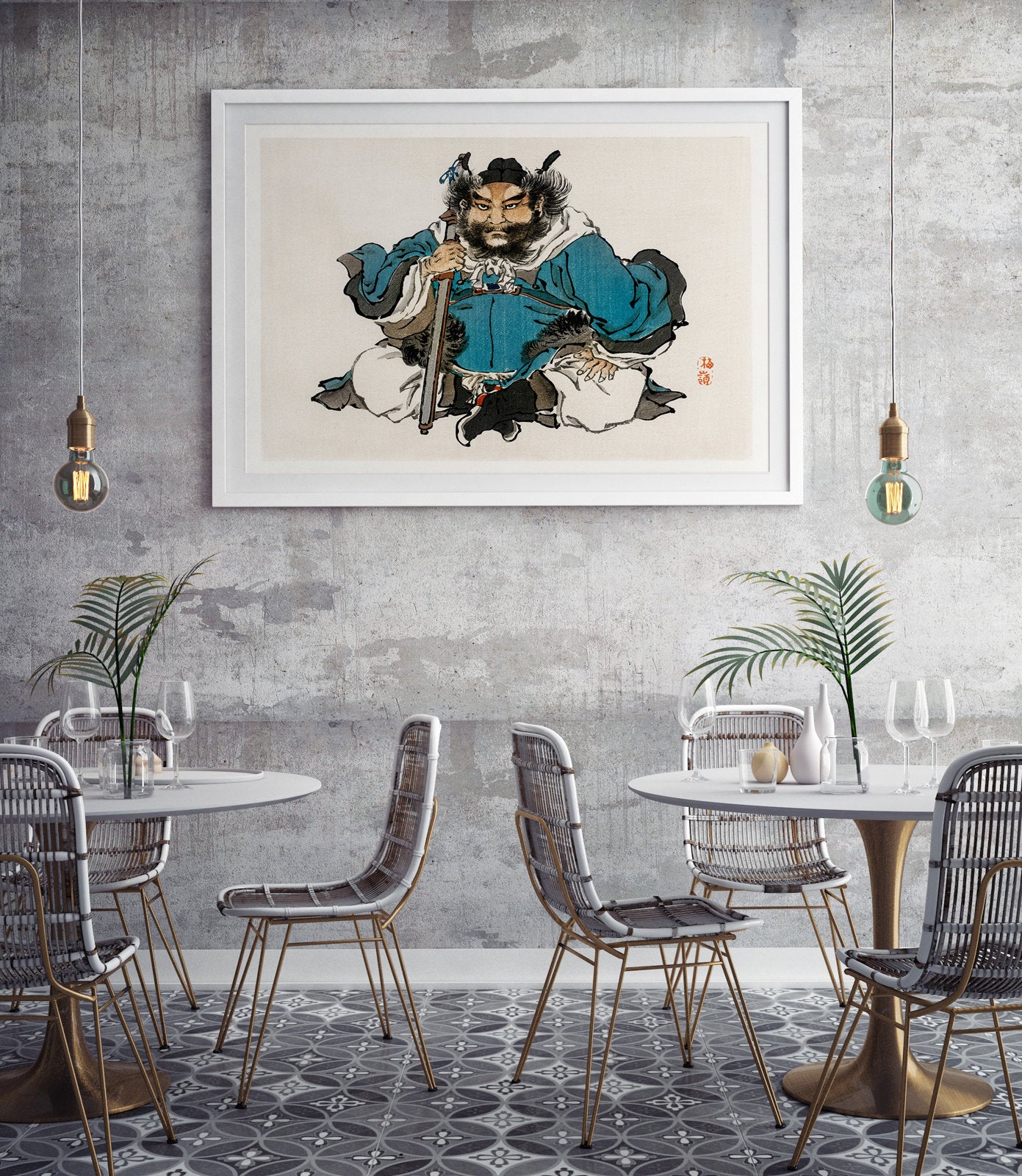 Illustration "Warrior" by Kōno Bairei, a Japanese artist. Kōno was a painter, book illustrator, and art teacher. He was born and lived in Kyoto. He belonged to the Ukiyo-e school and was a master of kacho-e painting (bird and flower depictions) during the Meiji period in Japan.