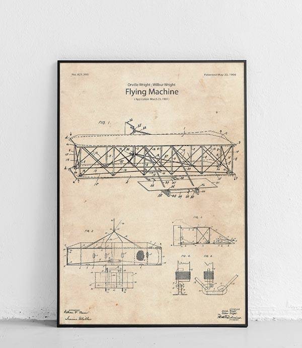 A poster with a reproduction of the patent for the world's first motorized airplane, by Orville and Wilbur Wright.