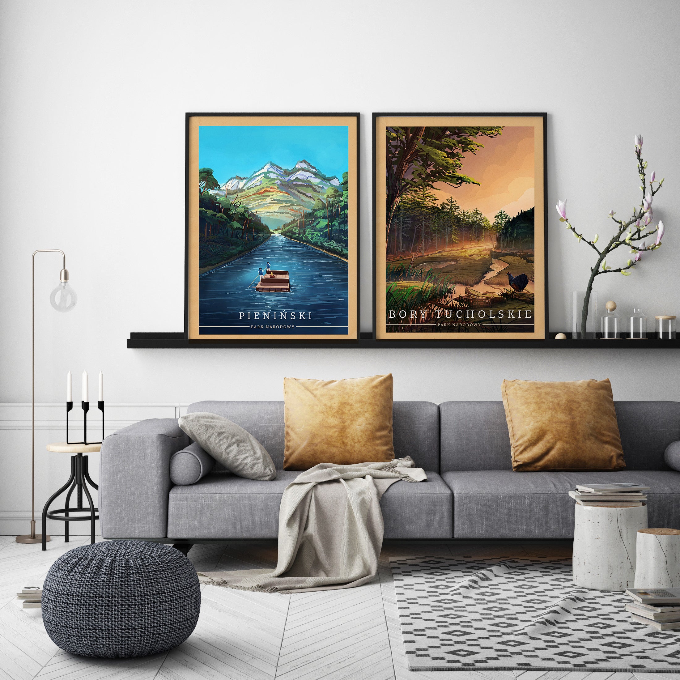 Zestaw plakatów Pieniński i Bory Tucholskie i Park Narodowy vintage wizu plakat
