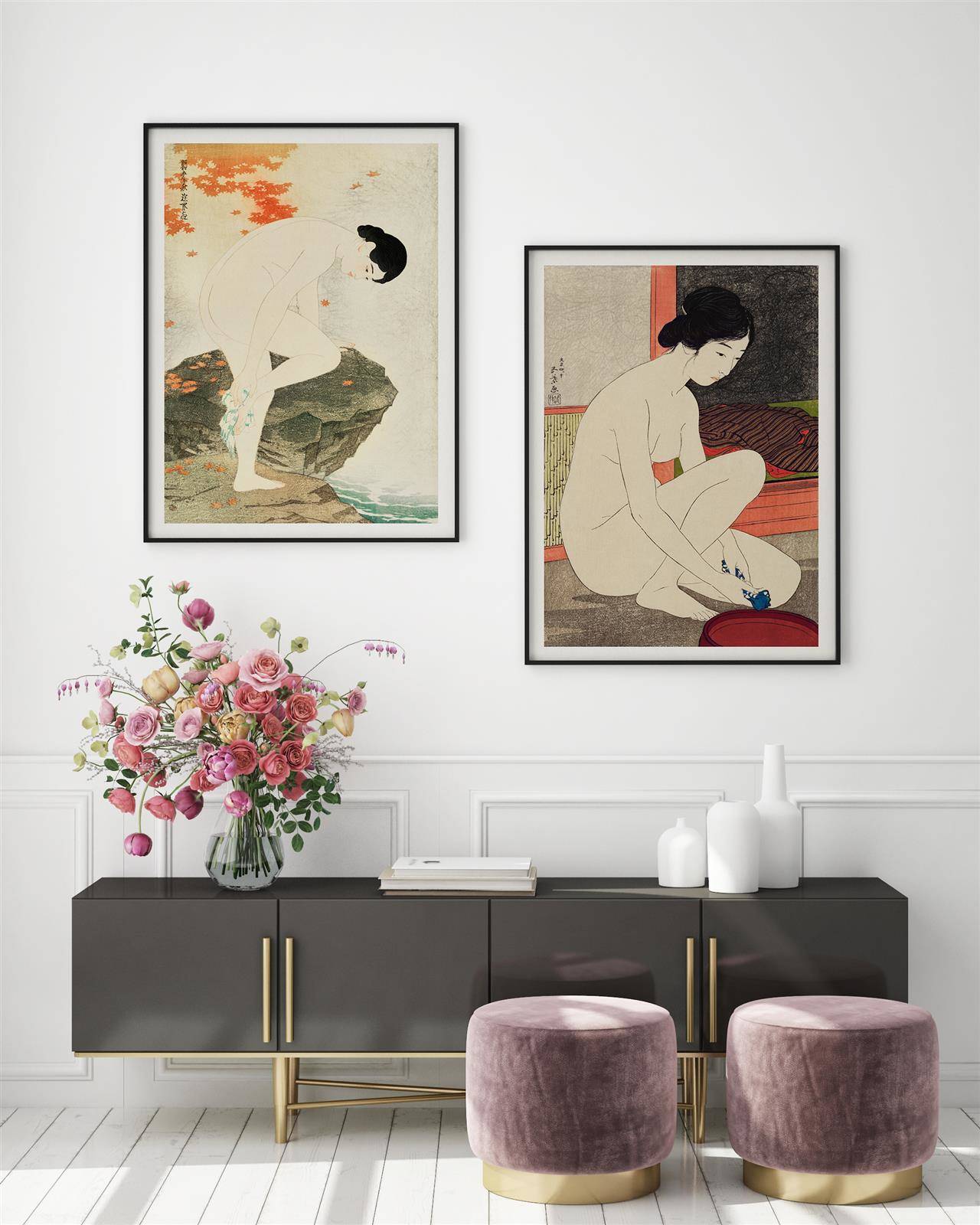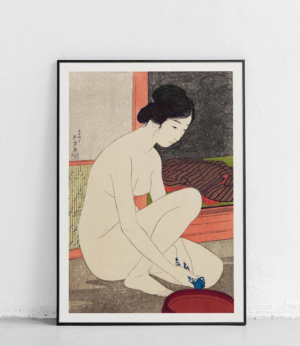 Belle affiche d'une femme après un bain à la japonaise. Parfait pour décorer votre intérieur et ajouter une ambiance orientale.