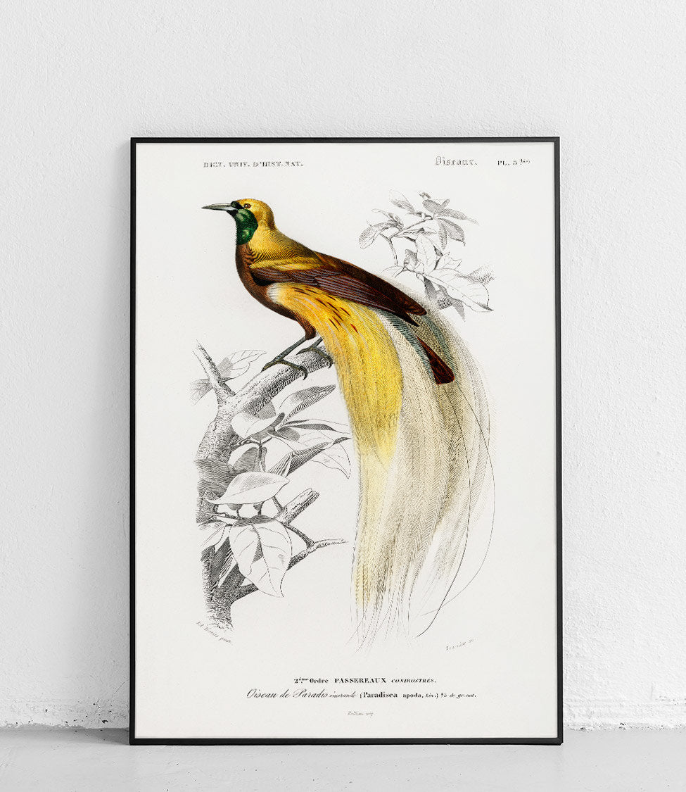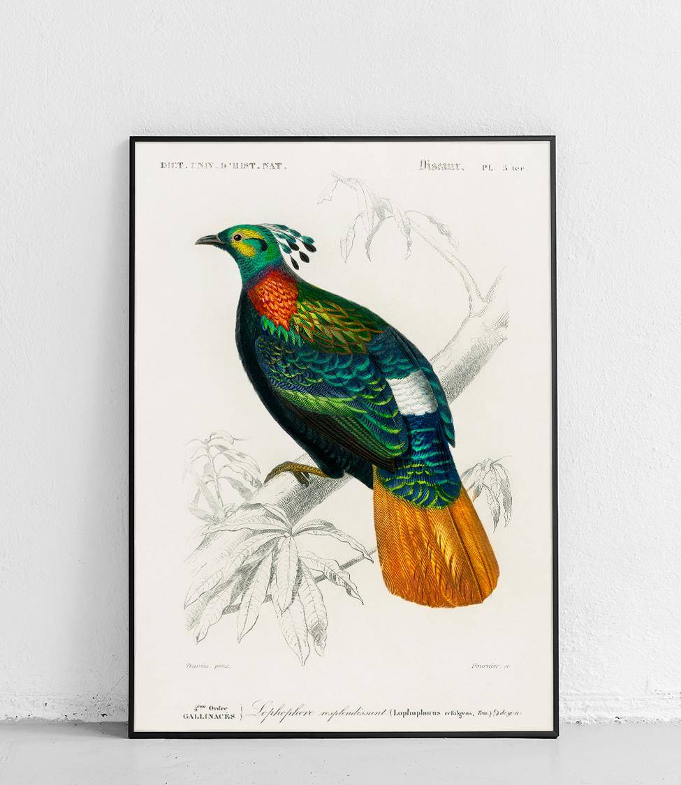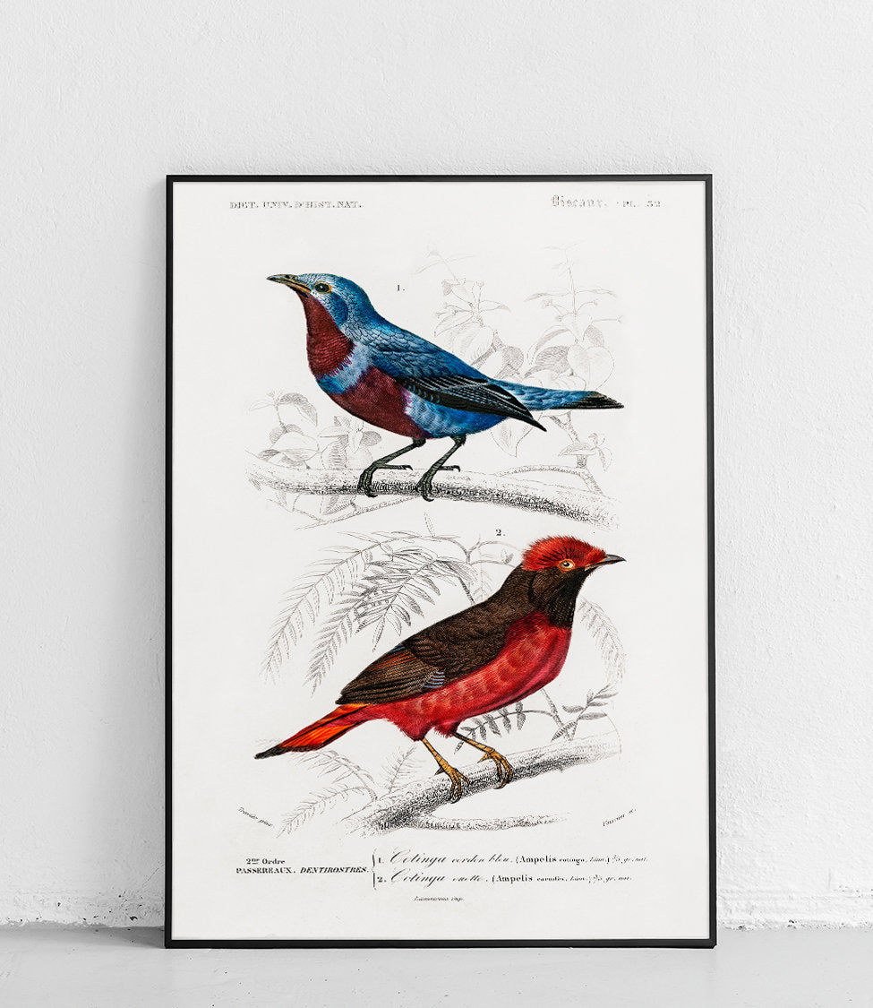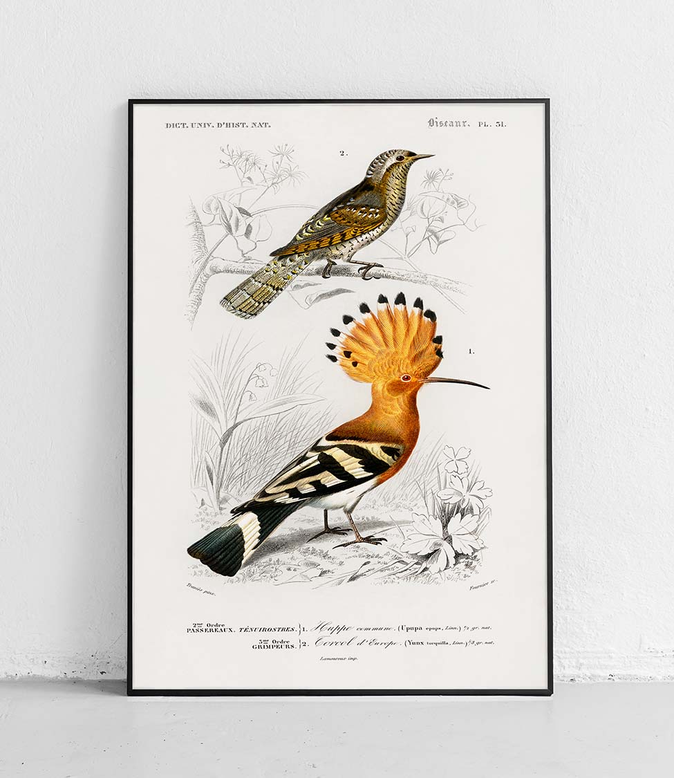La collection « Oiseaux » présente les illustrations exceptionnelles de deux naturalistes de renom : Charles d'Orbigny et François Levaillant. Leurs œuvres constituent les fondements de l'ornithologie moderne et impressionnent par leur précision scientifique et leur valeur artistique. Les affiches de cette série sont non seulement des décorations exceptionnelles, mais aussi un hommage à l'histoire de l'illustration naturaliste.