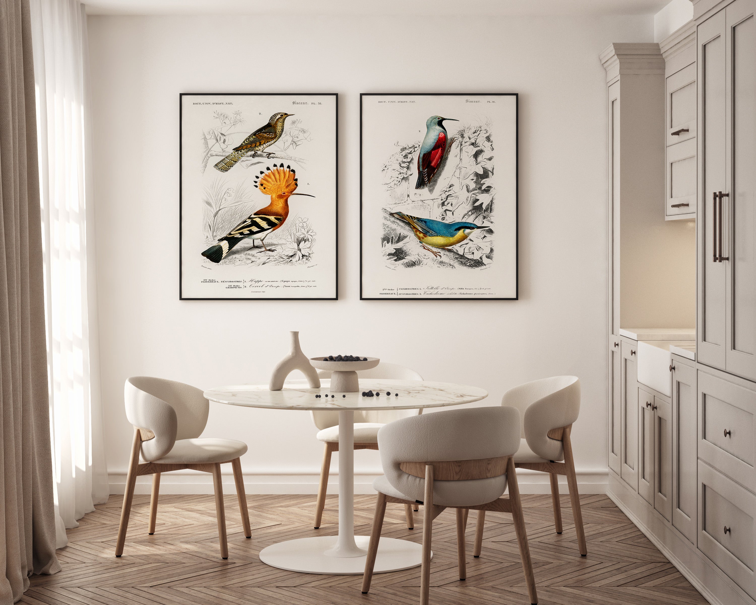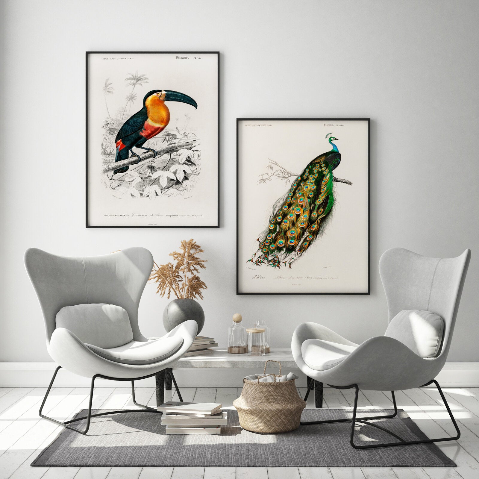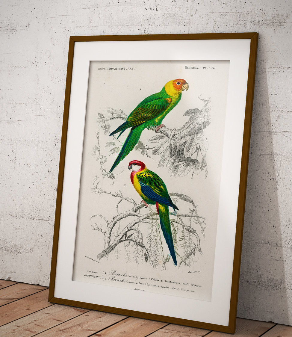 La collection « Oiseaux » présente les illustrations exceptionnelles de deux naturalistes de renom : Charles d'Orbigny et François Levaillant. Leurs œuvres constituent les fondements de l'ornithologie moderne et impressionnent par leur précision scientifique et leur valeur artistique. Les affiches de cette série sont non seulement des décorations exceptionnelles, mais aussi un hommage à l'histoire de l'illustration naturaliste.