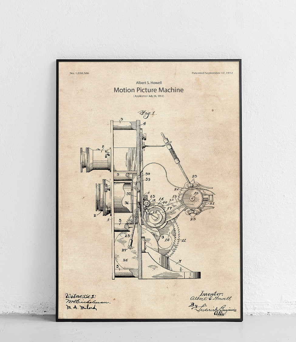 Une affiche représentant une caméra de cinéma classique, parfaite pour les amateurs de cinéma et de technologie.