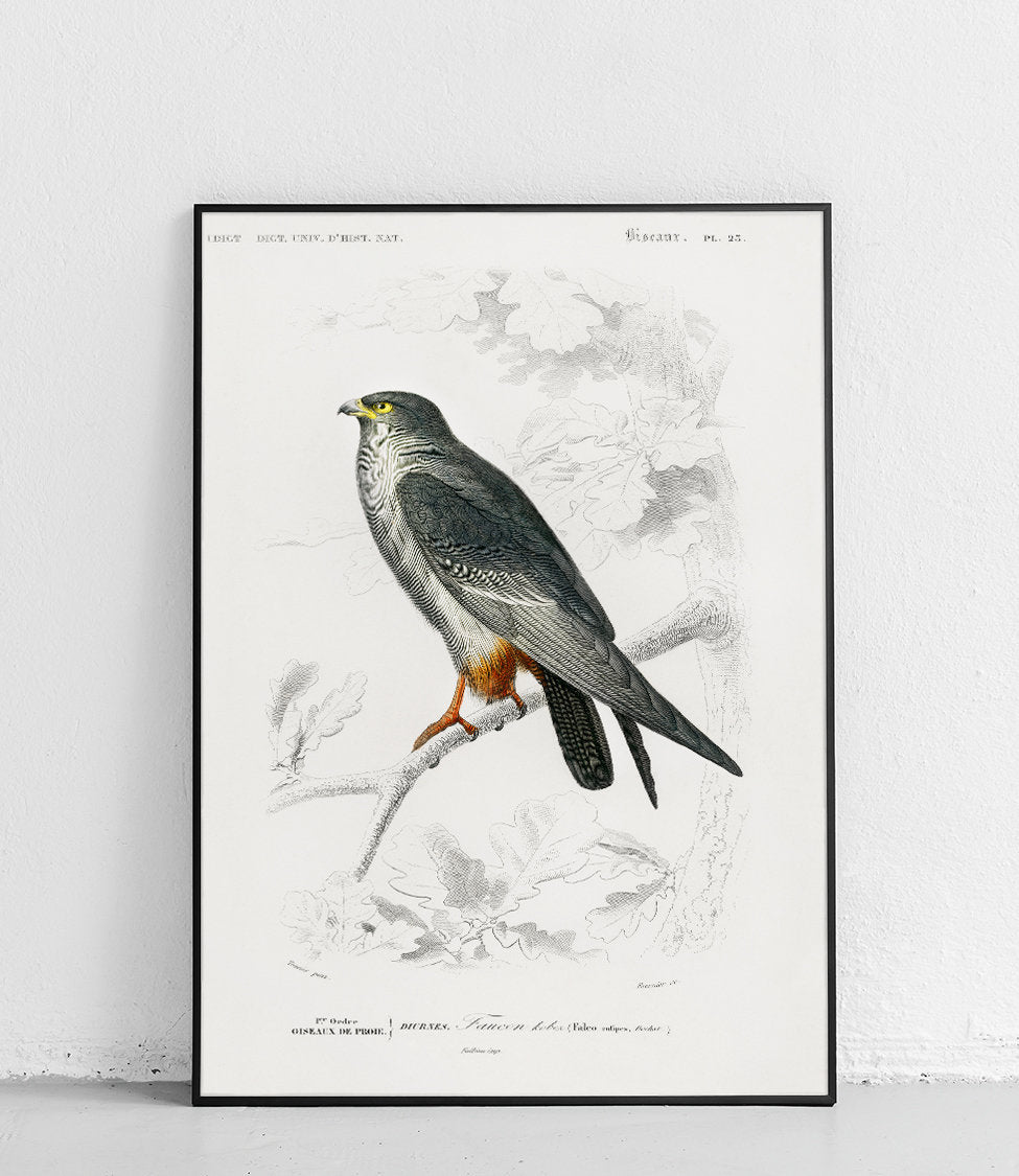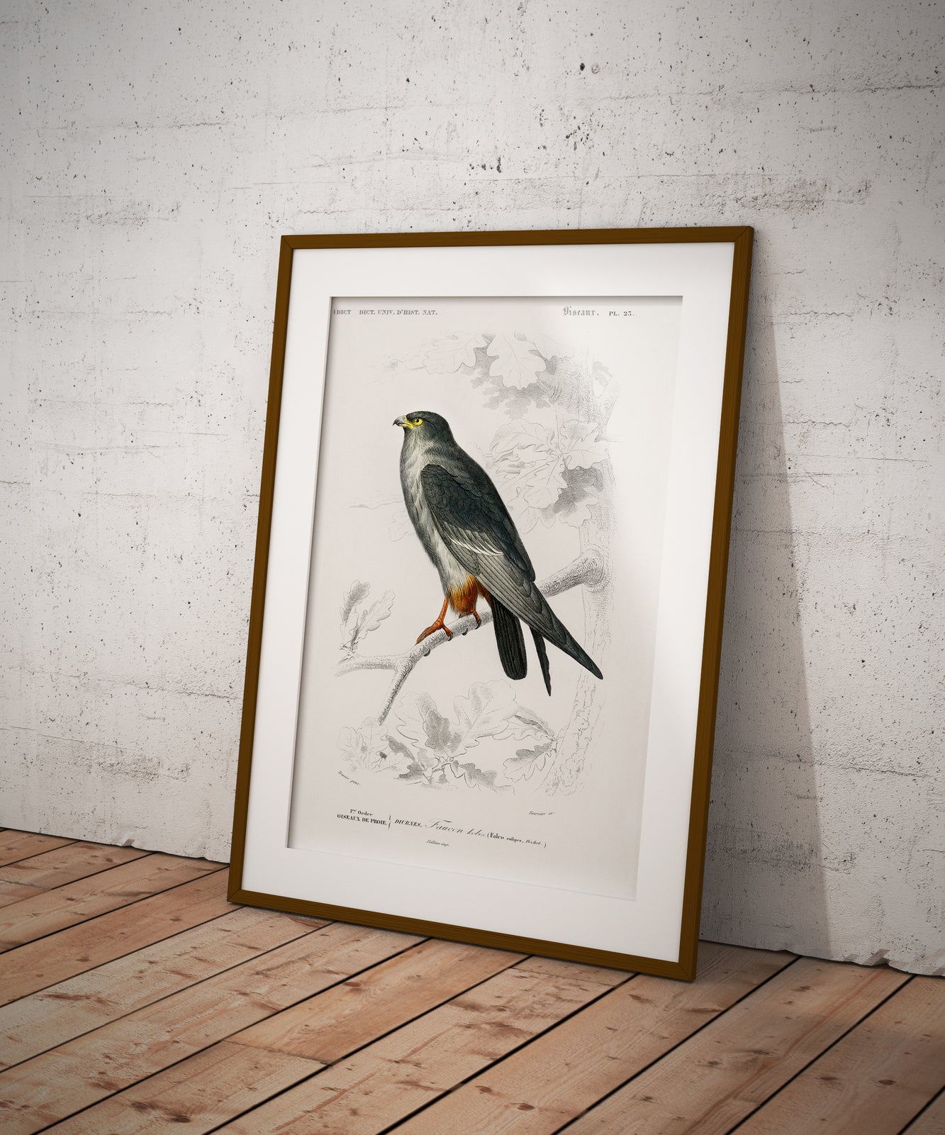 Il représente un faucon kobez (Falco rufipez), une espèce d'oiseau de proie de la famille des faucons.