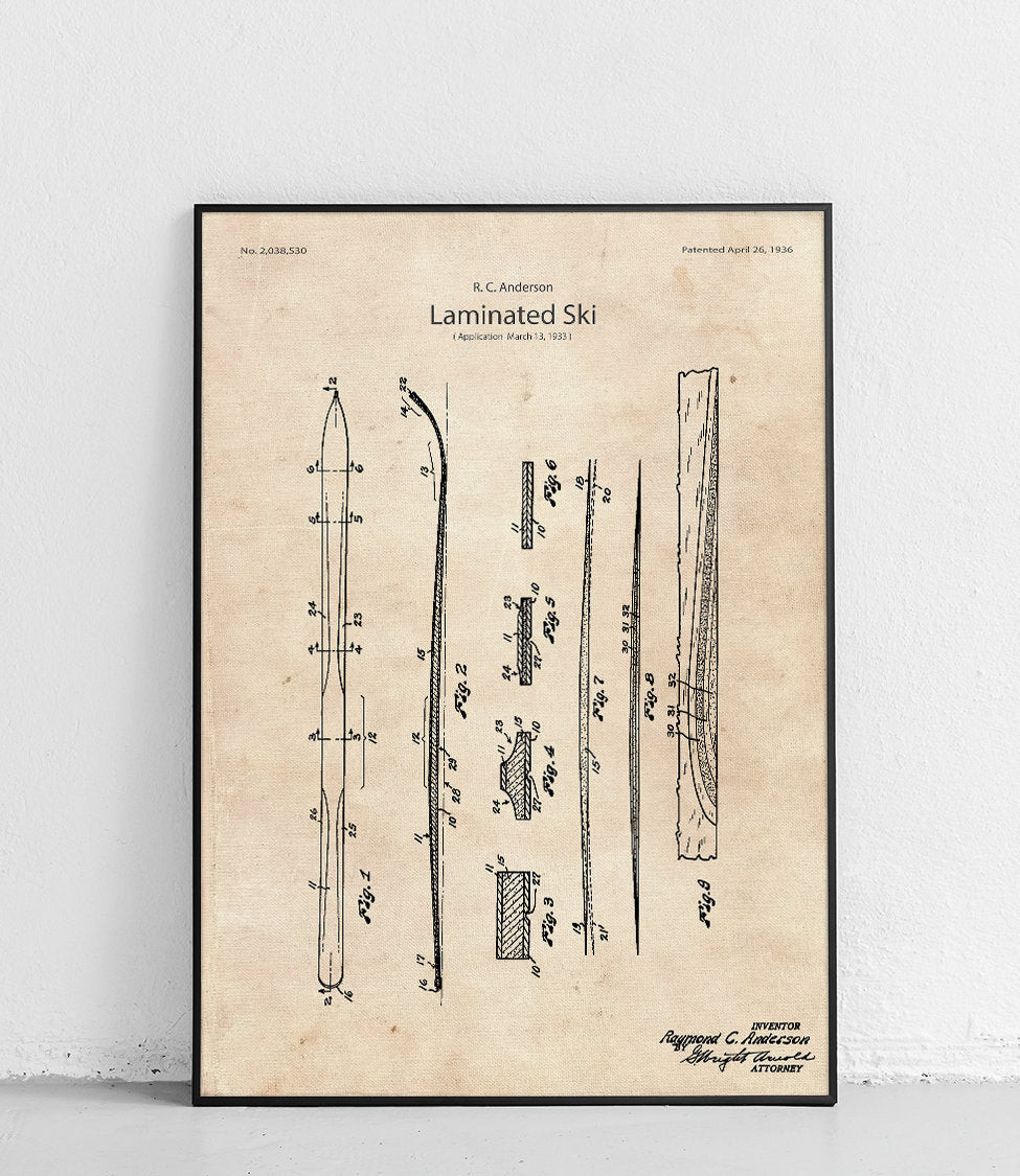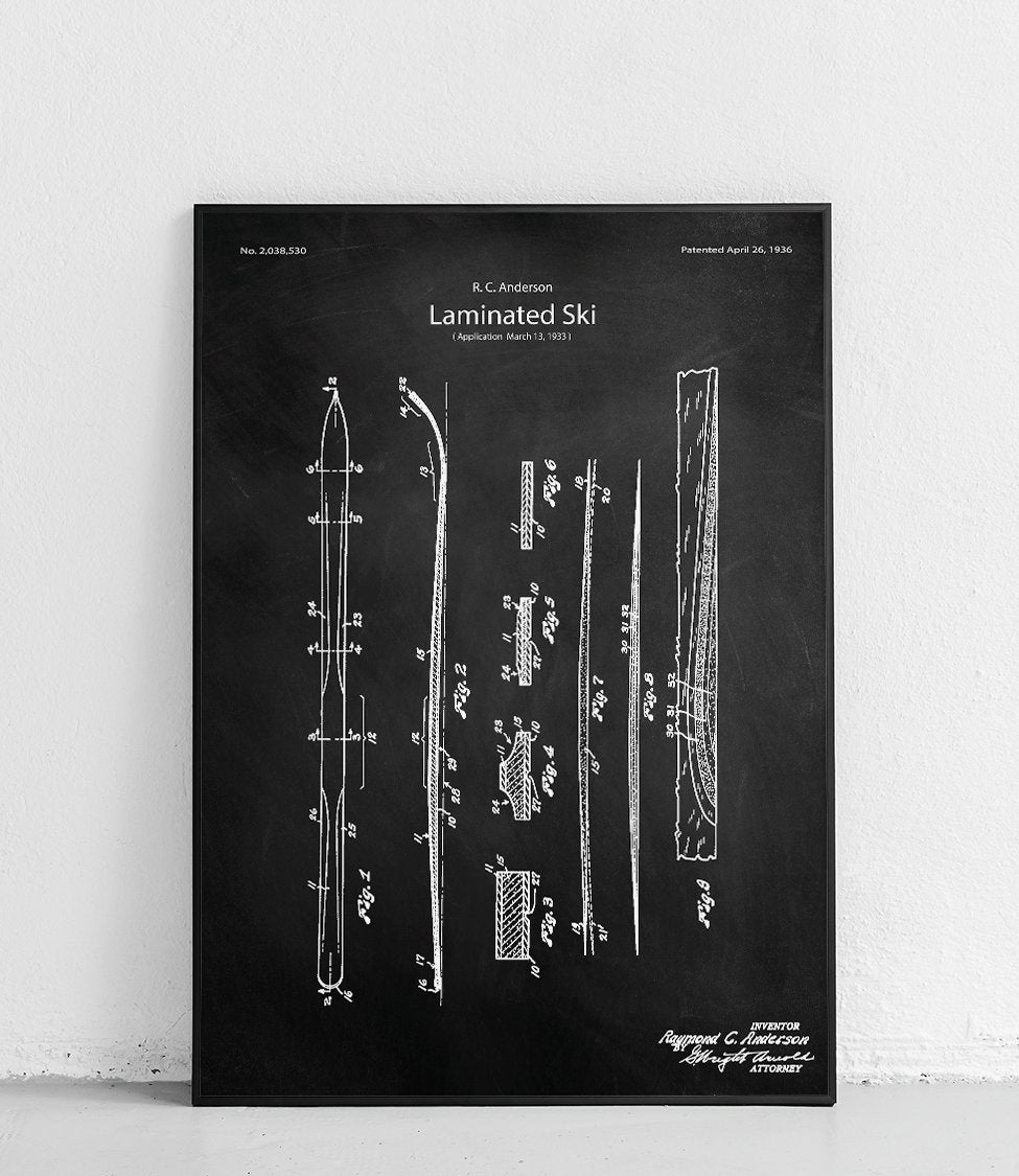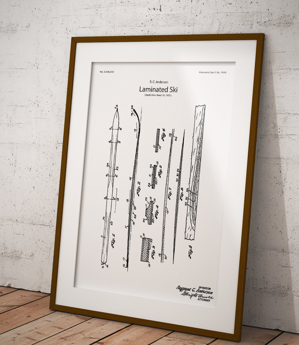 Une belle affiche représentant des skis, parfaite pour les amateurs de sports d'hiver et les passionnés de ski.