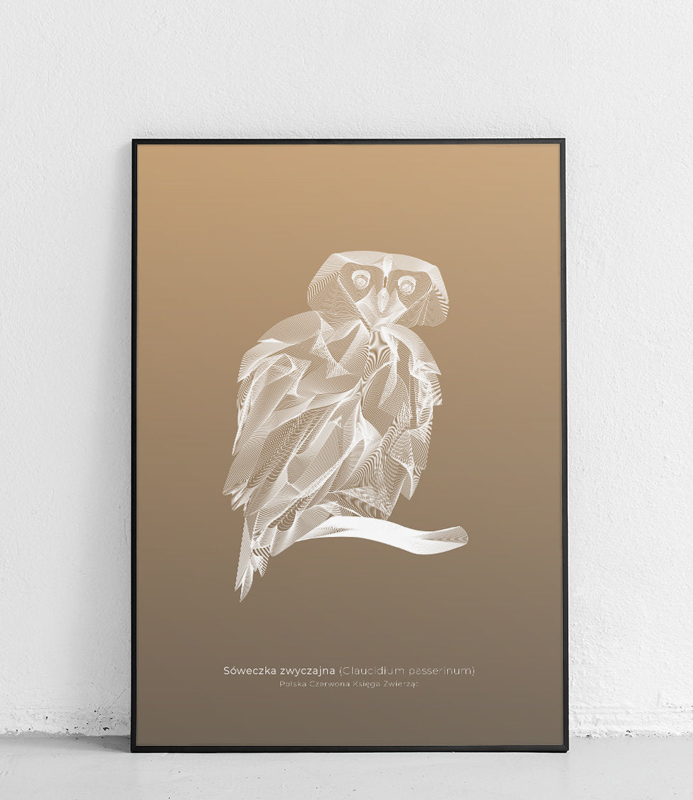 Belle affiche d'un hibou blanc sur fond marron. Parfait pour les amoureux des oiseaux et de la nature.