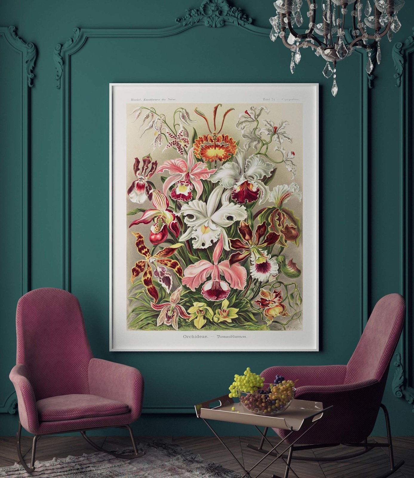 Belle affiche représentant des plantes d'orchidées, réalisée par Charles d'Orbigny. Parfait pour la décoration intérieure.