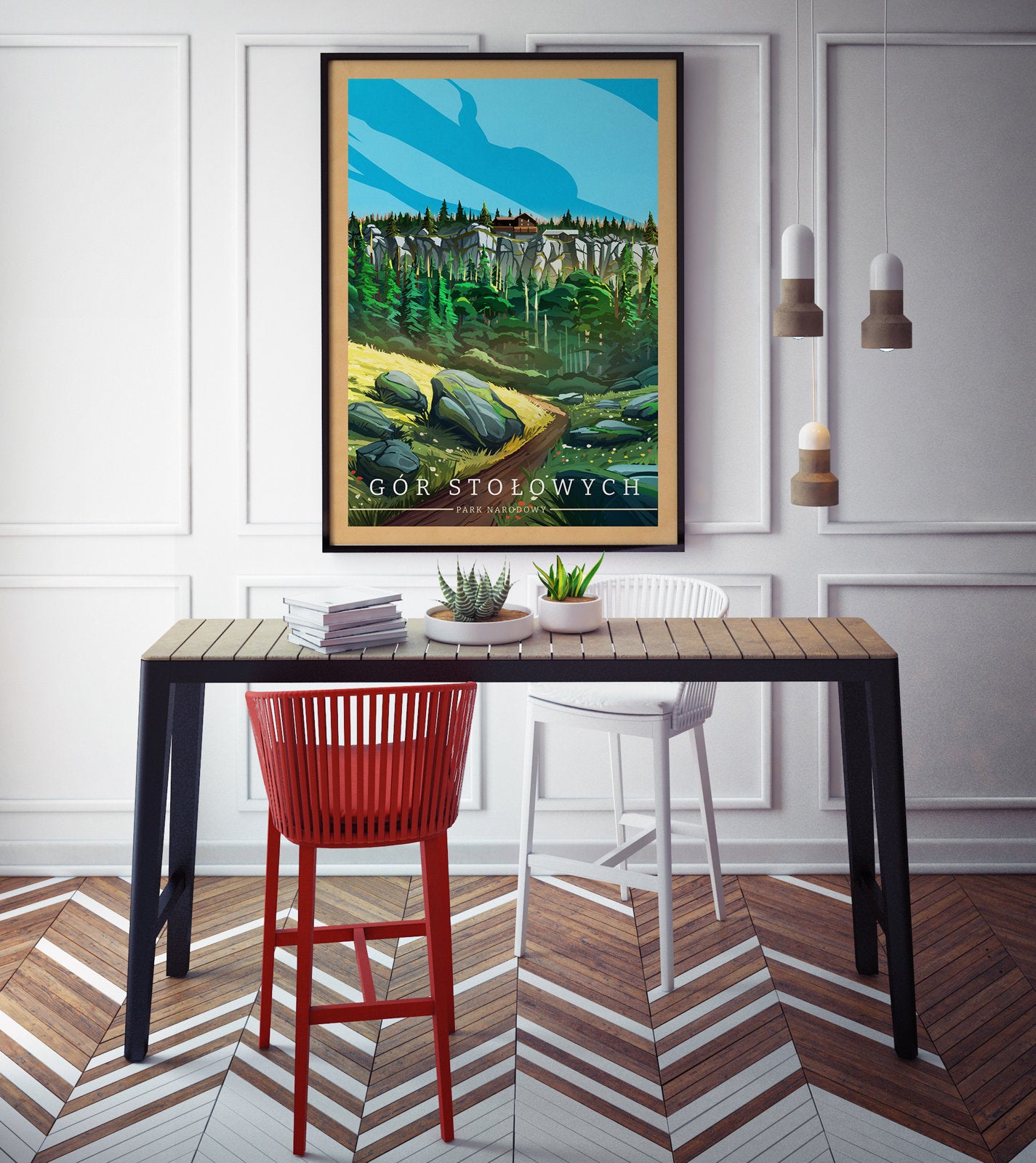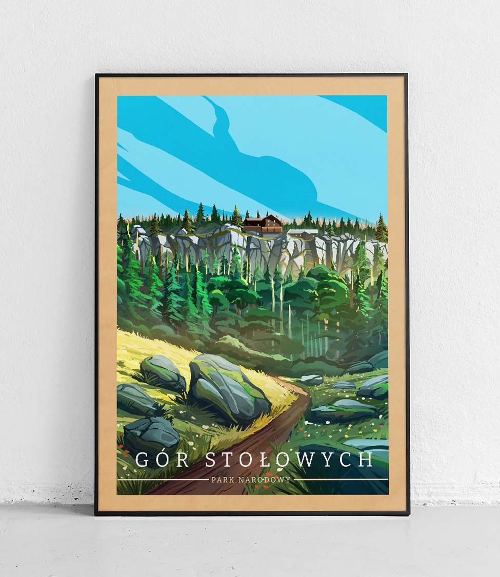Plakat Park Narodowy Gór Stołowych znajduje się w naszej nowej serii plakatów POLSKIE PARKI NARODOWE. Jedyny w swoim rodzaju cykl, który przedstawia najpiękniejsze i najbardziej malownicze zakątki kraju. Nasze plakaty turystyczne ukazują popularniejsze obszary przepięknej Polski.