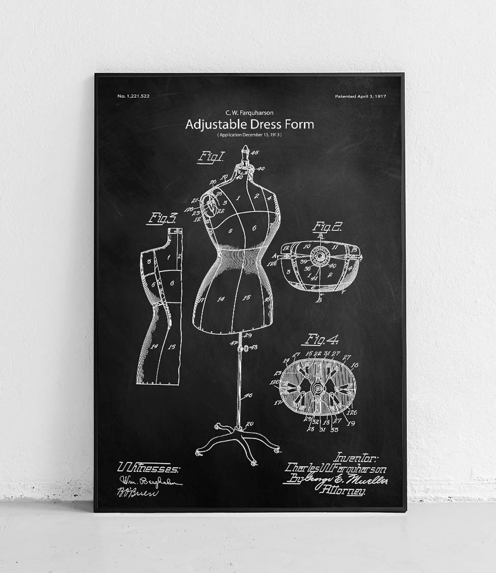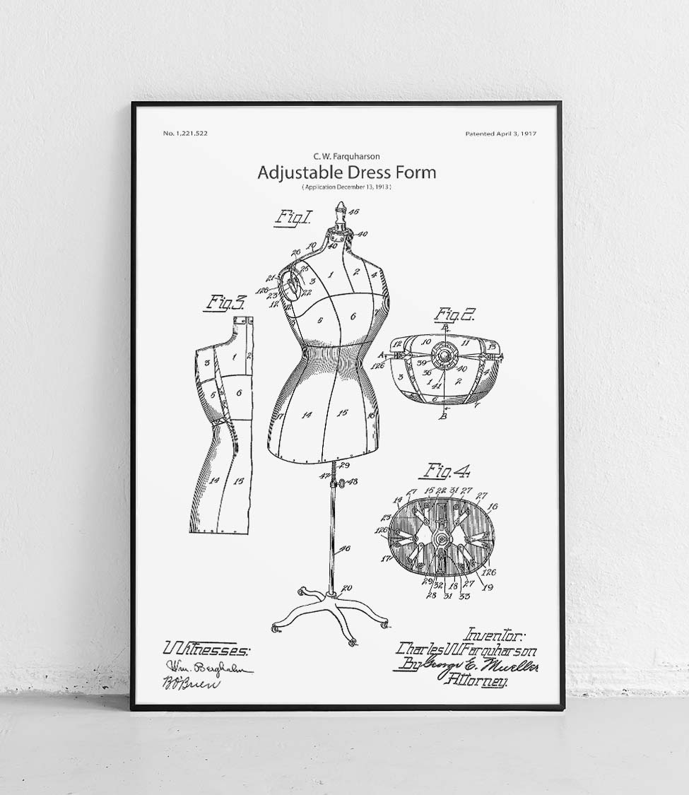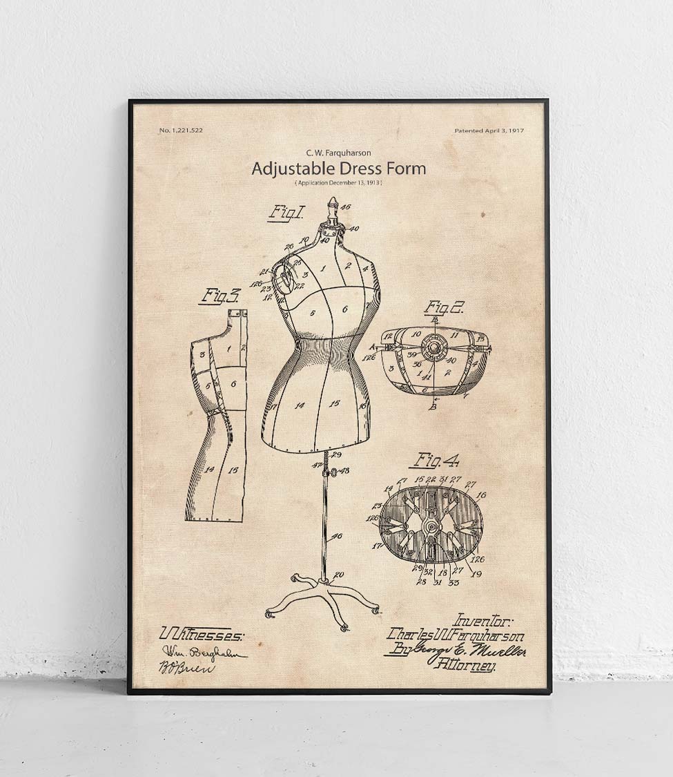 Plakat z reprodukcją patentu manekina na ubrania  autorstwa Charles'a W. Farquharson.