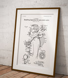 Plakat z reprodukcją patentu przedstawiającego aparat tlenowy do nurkowania, autorstwa Christian'a J. Lambertsen.