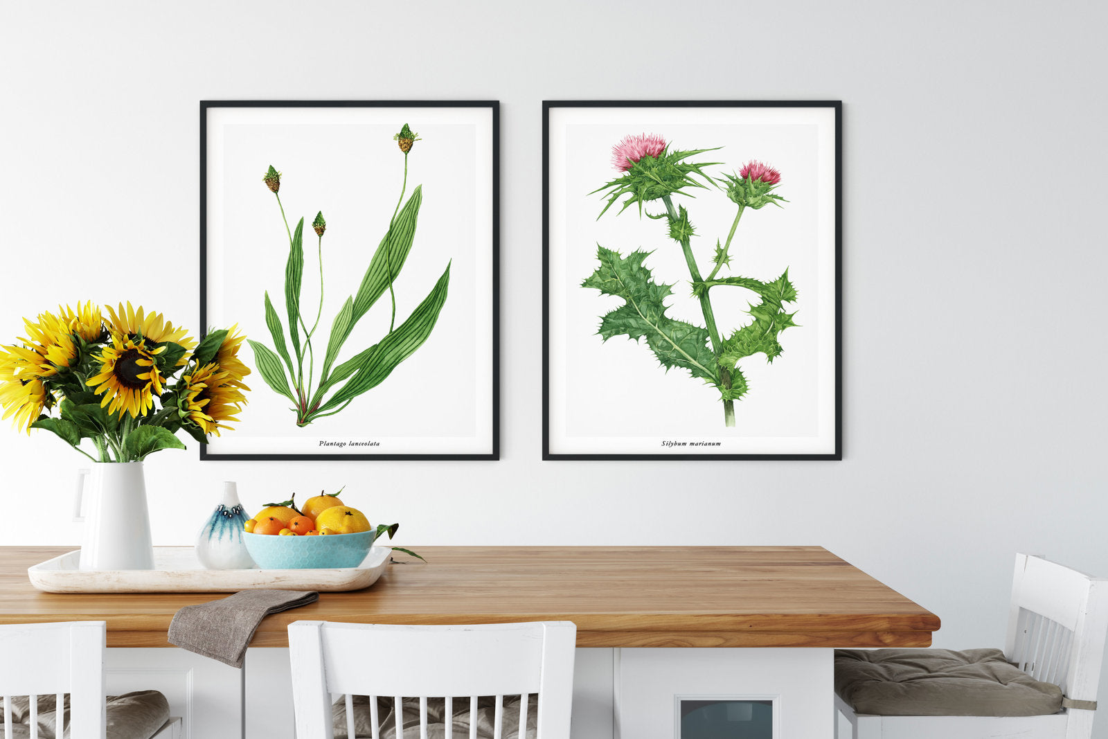 Plakat z serii "Rośliny lecznicze" przedstawiający Plantago lanceolata czyli babka lancetowata. Ma szerokie zastosowanie w medycynie.