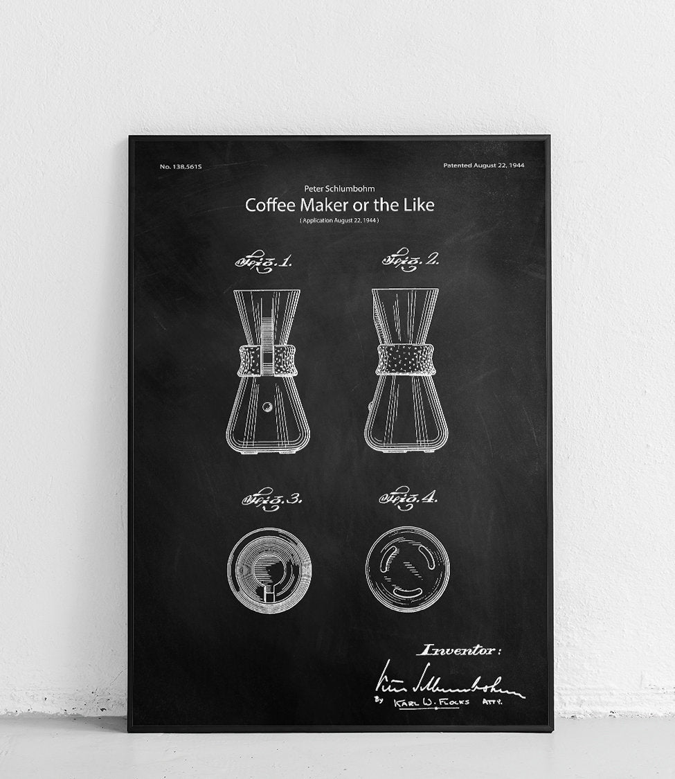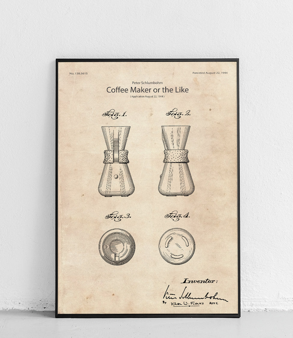 Plakat z reprodukcją patentu chemexa autorstwa Peter'a Schlumbohm.
