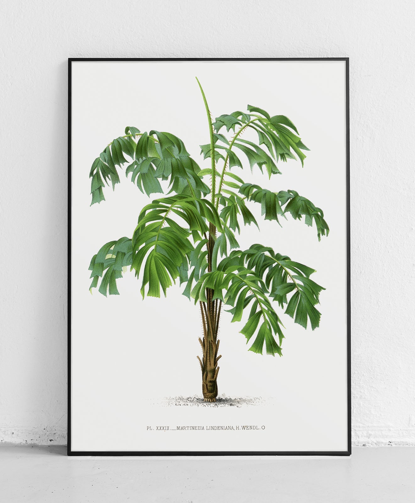 Piękna ilustracje Drzewo Palmowe Les Palmiers Histoire Iconographique z 1878 roku, ilustrowanego przez Oswalda de Kerchove de Denterghem.