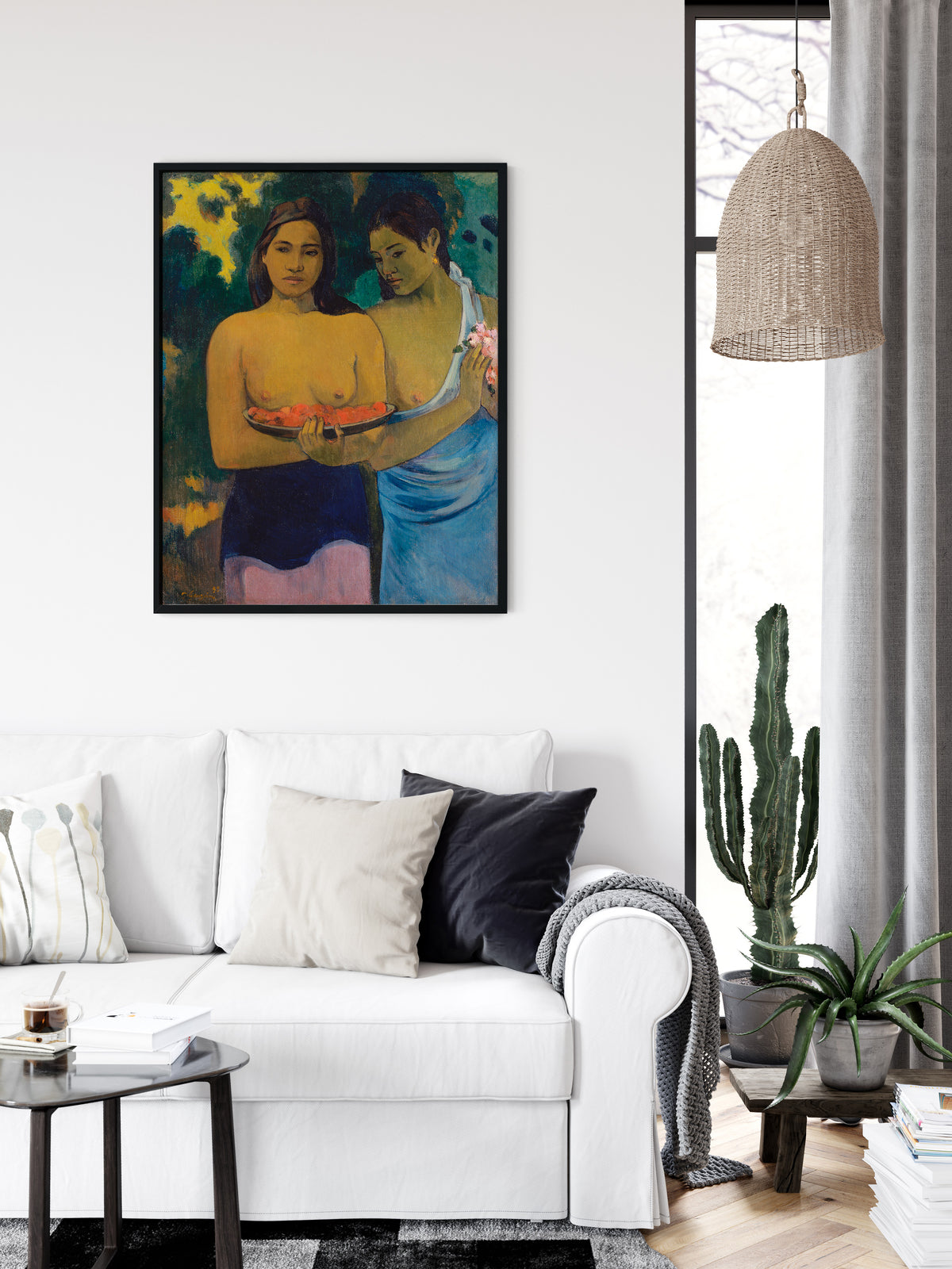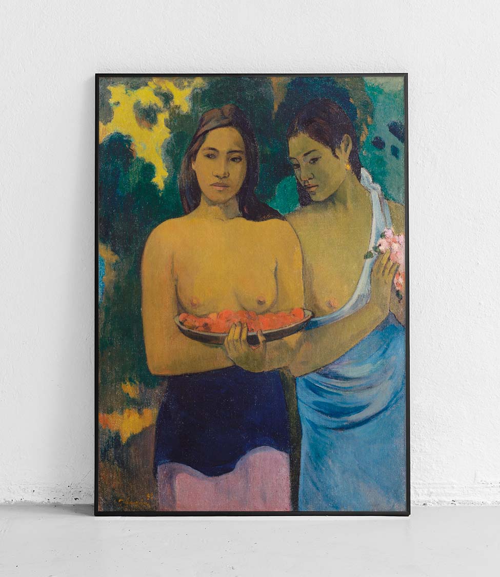 Załączona grafika przedstawia "Two Tahitian Women" namalowany w 1899. Przedstawia dwie kobiety topless, jedna trzymająca kwiaty mango, na pacyficznej wyspie Tahiti. Obraz jest częścią stałej kolekcji Metropolitan Museum of Art w Nowym Jorku i został podarowany muzeum przez Williama Churcha Osborna w 1949 r.