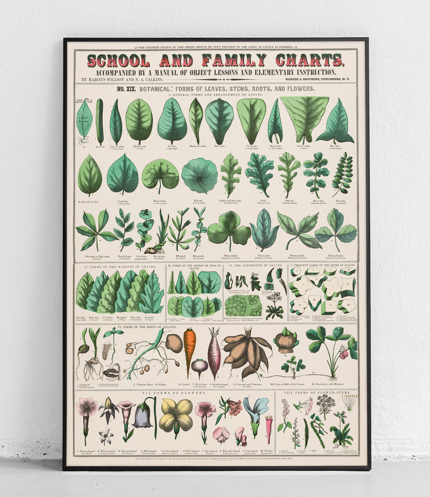 Ta oryginalna ilustracja to jedna z plansz szkolnych i rodzinnych "Formy liści, łodyg, korzeni i kwiatów". Została wykonana przez Marcius Willson and Norman A. Calkins. Oryginał z Biblioteki Kongresu.