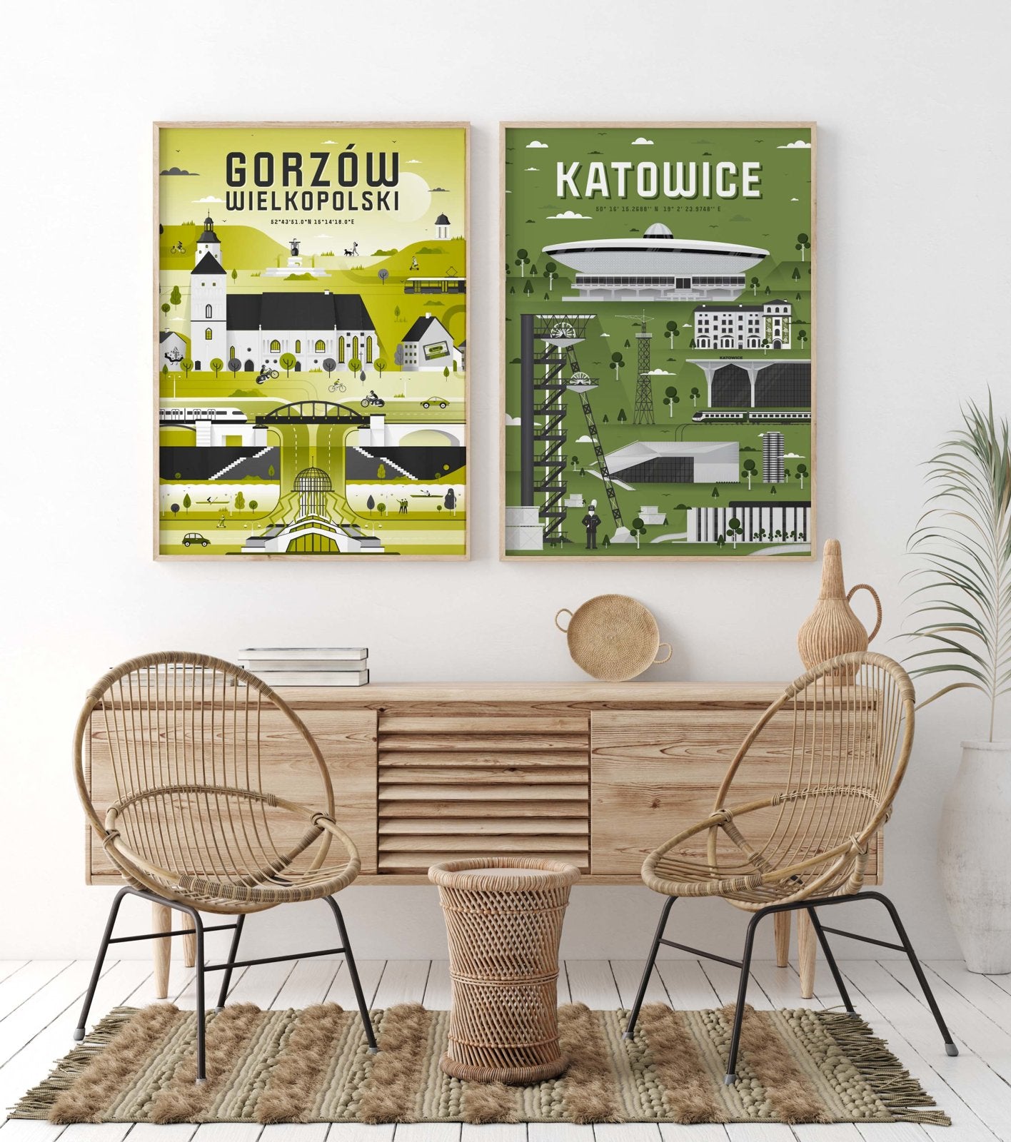 Plakat z serii “Miasta” przedstawia najbardziej znane symbole Gorzowa Wielkopolskiego, w tym między innymi: