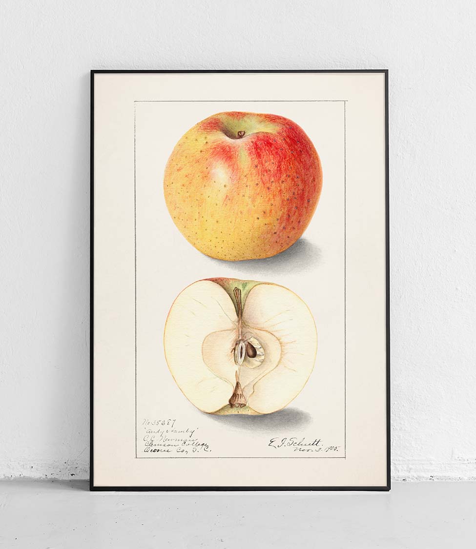 Piękny plakat przedstawiający jabłko, idealny dla miłośników roślin i natury.