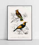 Ta oryginalna ilustracja z serii "Zwierzęta" przedstawia jemiołuszkę i błyszczek złotogłowy. Wykonana na zlecenie Słownika Powszechnego Historii Naturalnej przez francuskiego botanika i geologa Charles Henry Dessalines d’Orbigny.