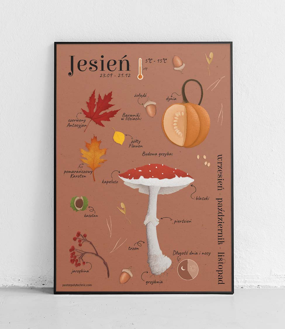 to czwarty z plakatów edukacyjnych, którym rozpoczynamy serię pomocy naukowych dla przedszkoli, szkół i oczywiście prywatnych pokoi Waszych pociech.Zależało nam na ukazaniu elementów charakterystycznych dla jesieni