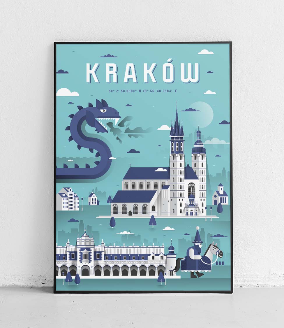 Plakat Kraków to oczywiście jeden z najpopularniejszych plakatów z naszej serii Miasta Polski autorstwa wrocławskiego grafika, Roberta Kostrzewy.