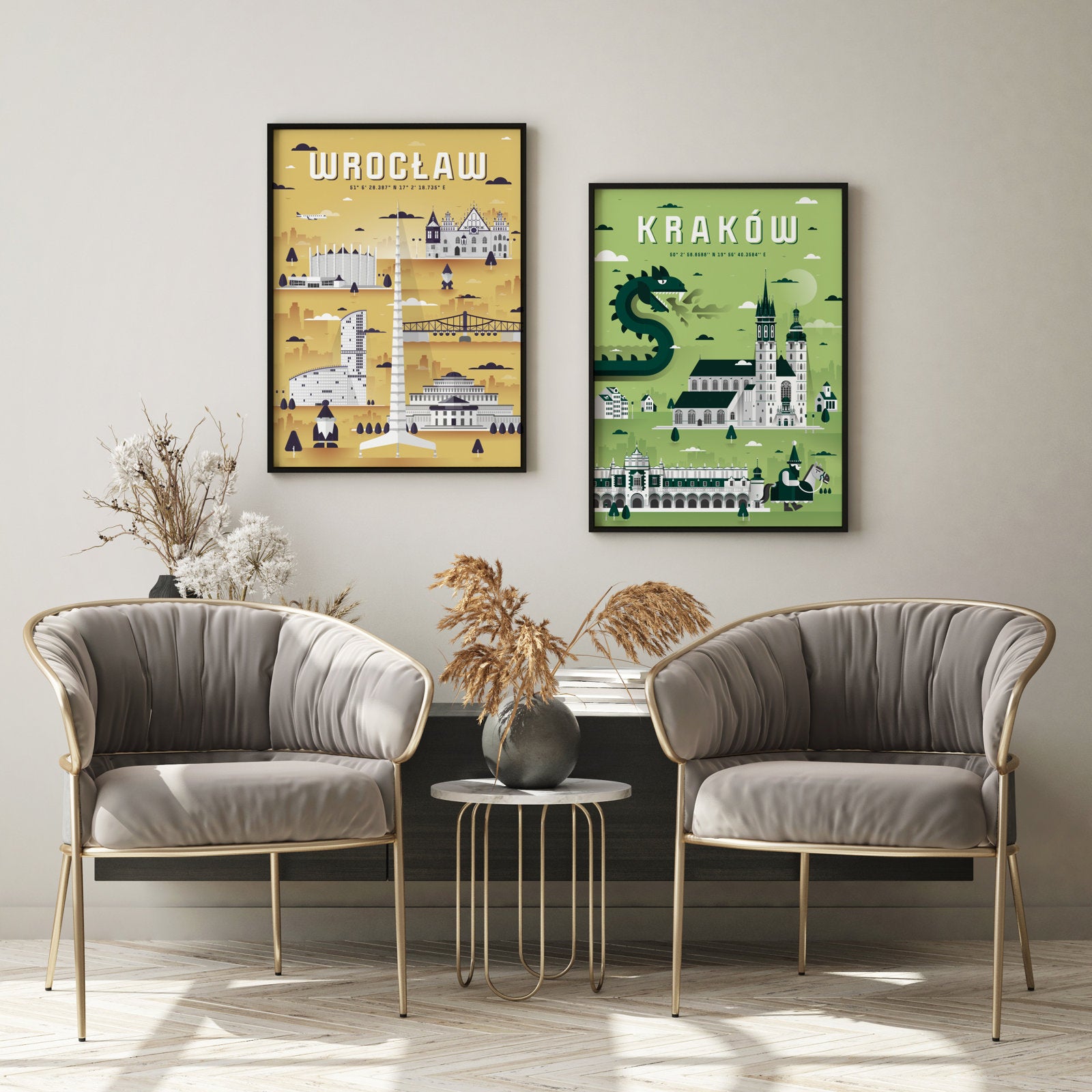 plakatu Kraków doskonale współtworzą całość, oddając niepowtarzalny charakter tej dawnej stolicy Polski.Na pewno współtworzy okazały duet lub tryptyk z innymi plakatami z naszej serii.