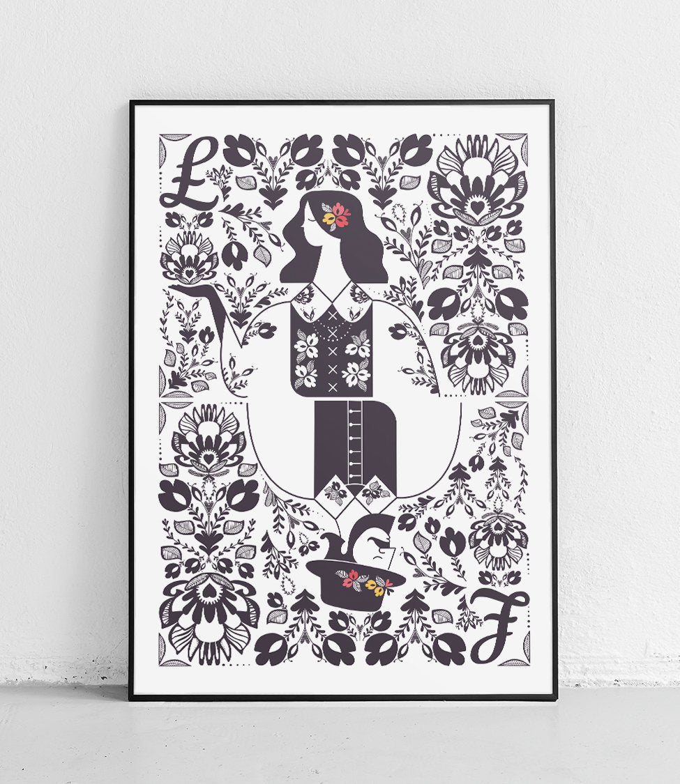 Plakat Łowicki strój ludowy - czarno-biały