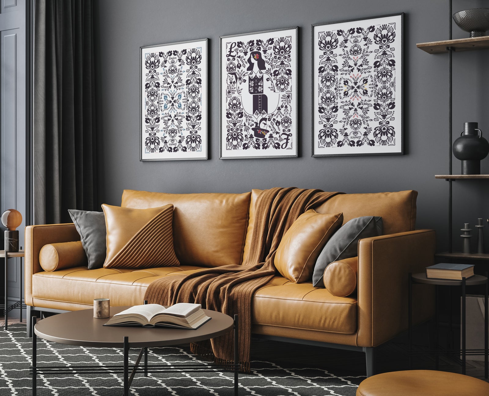 Plakat Łowicki strój ludowy - czarno-biały