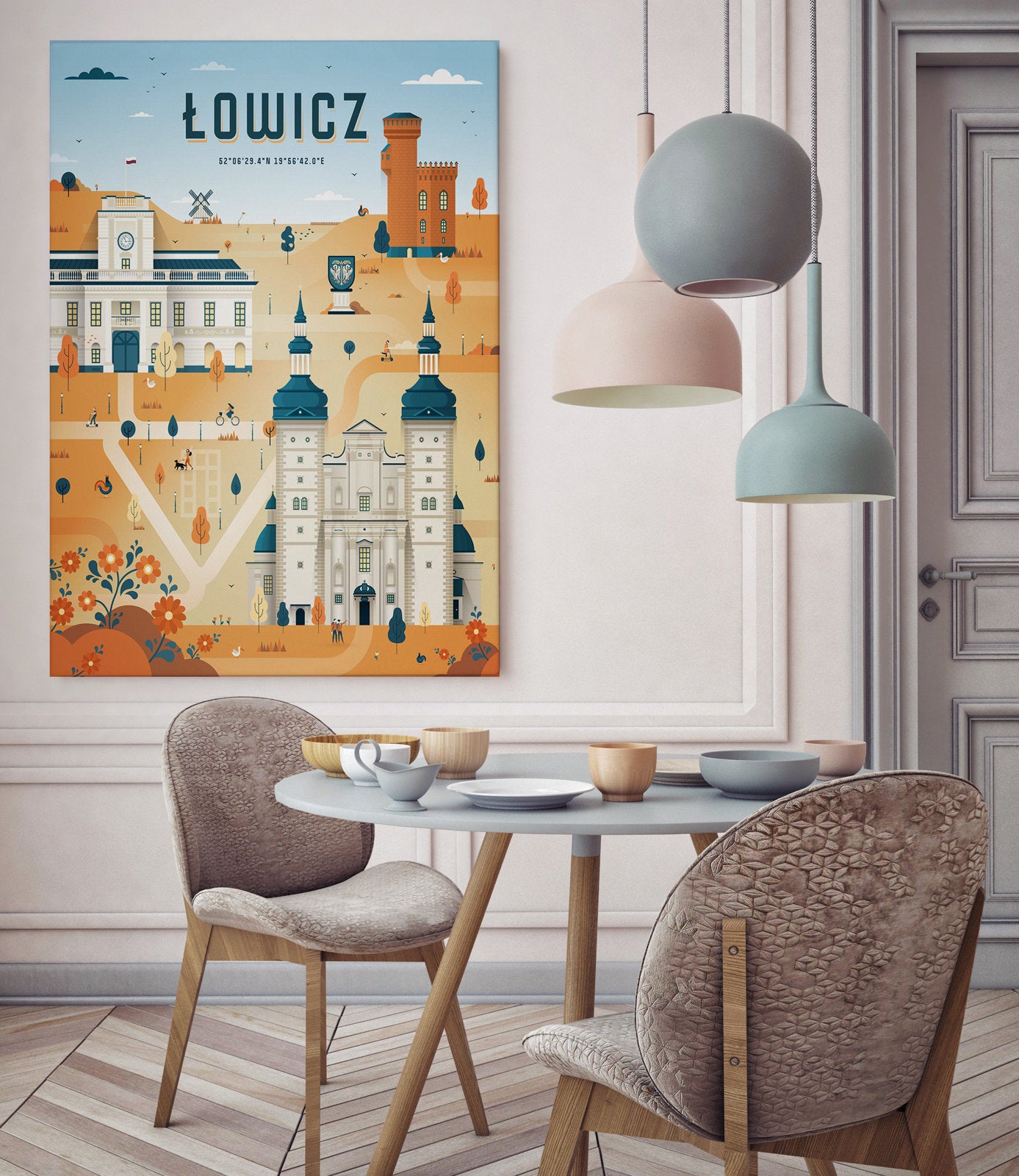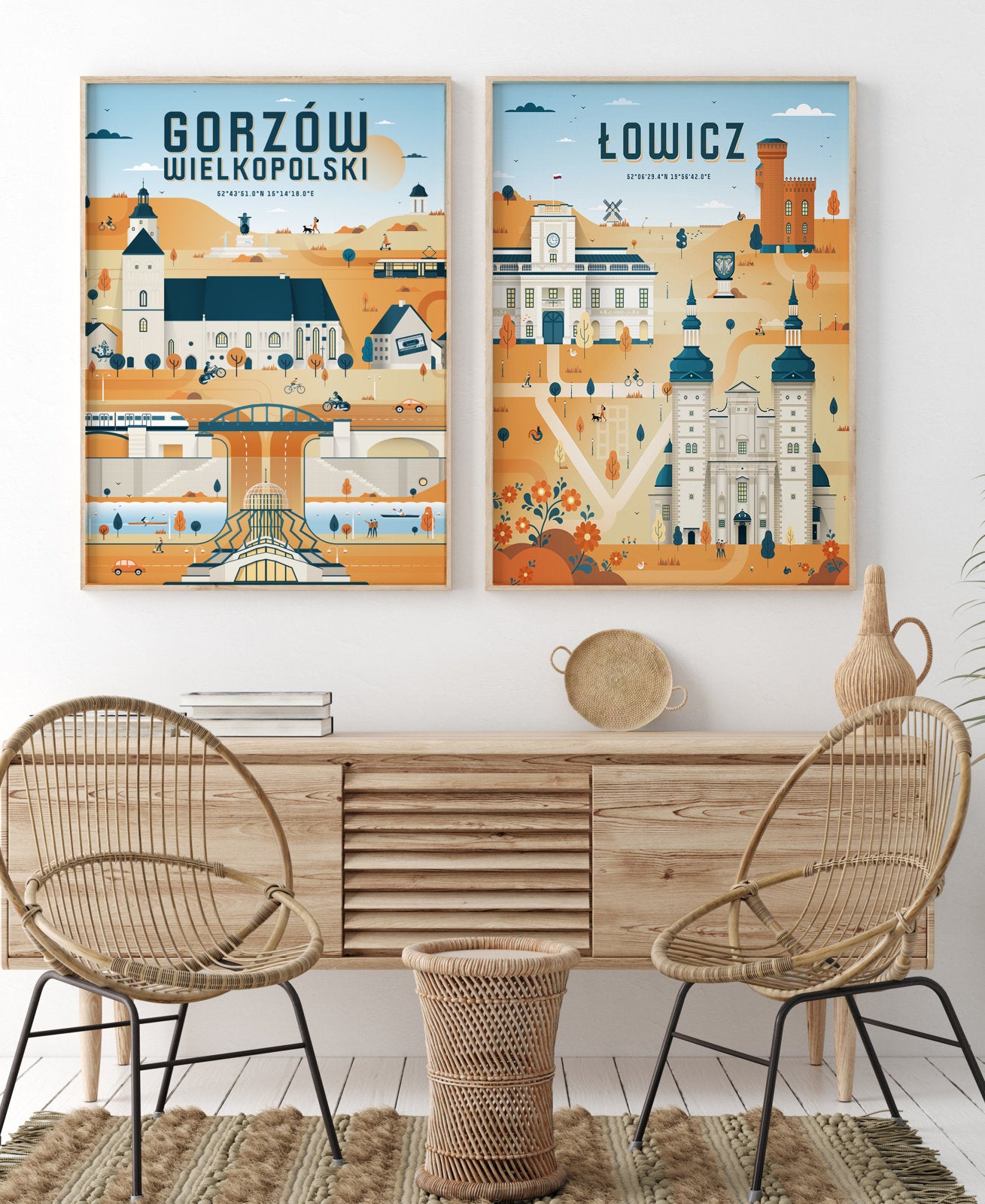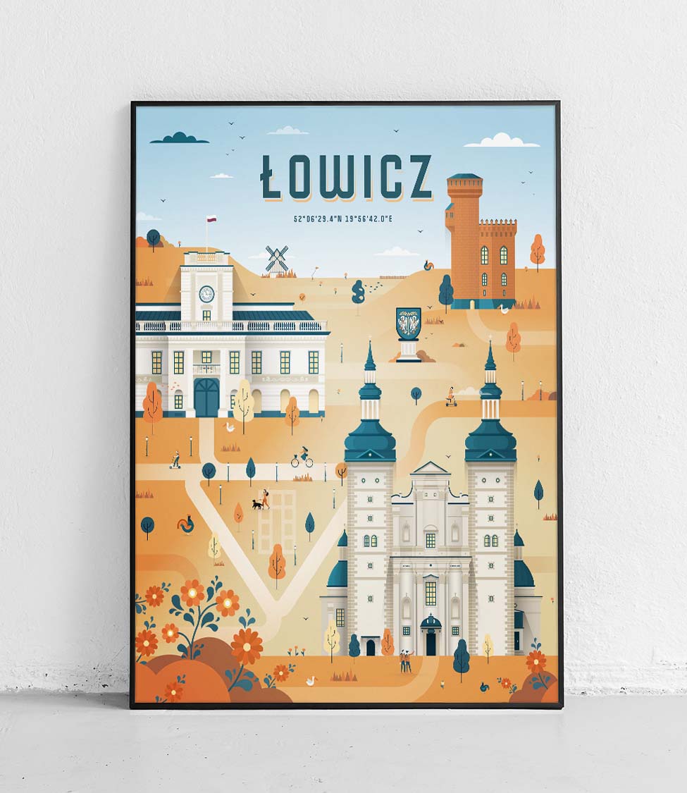 Plakat Łowicz to wyjątkowy poster serii Miasta Polski zdolnego artysty, Roberta Kostrzewy, który wykonał go dla nas na specjalne zamówienie.