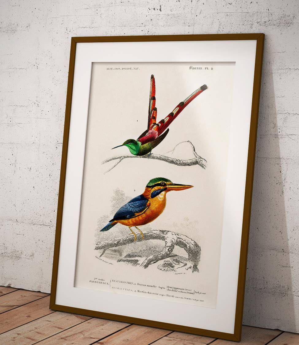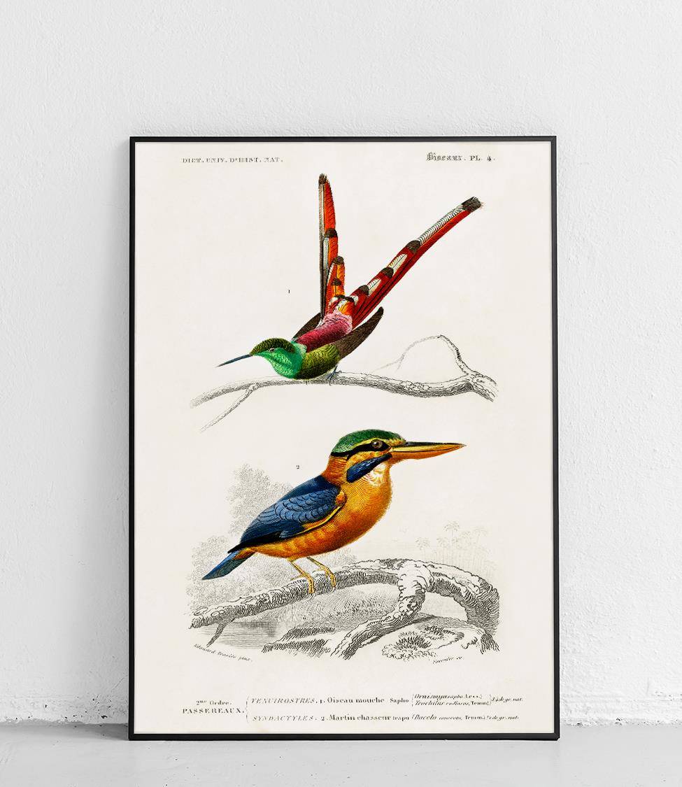 Załączona grafika przedstawia Łowca zielonogłowego (Actenoides concretus) i Safo (Ornismya Sapho).
