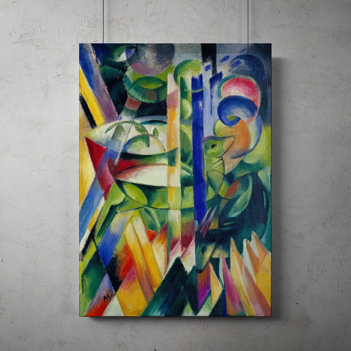 iemiecki malarz i współzałożyciel ugrupowania artystów-ekspresjonistów „Błękitny Jeździec" (Der Blaue Reiter). Był uważany za jedną z kluczowych postaci ruchu ekspresjonistycznego w Niemczech w swoim czasie. W wielu pracach Marca pojawia się tęsknota za idealnym związkiem człowieka z naturą. W prywatnej mitologii Marca zwierzęta odgrywają taką rolę, jak dla artystów renesansu anioły: są wysłannikami i świadectwami prawdy, piękna i łaski. Obraz przedstawia więc coś na kształt świeckiego zwiastowania: przedstawicielka rodu ludzkiego trafiła między wybranych, w pejzaż idylli, który ma w sobie spokój renesansowych włoskich pejzaży. W obrazie występują konie, uwielbiane przez Kandinskyego i Marca.Załączona grafika przedstawia "Małe kozy górskie