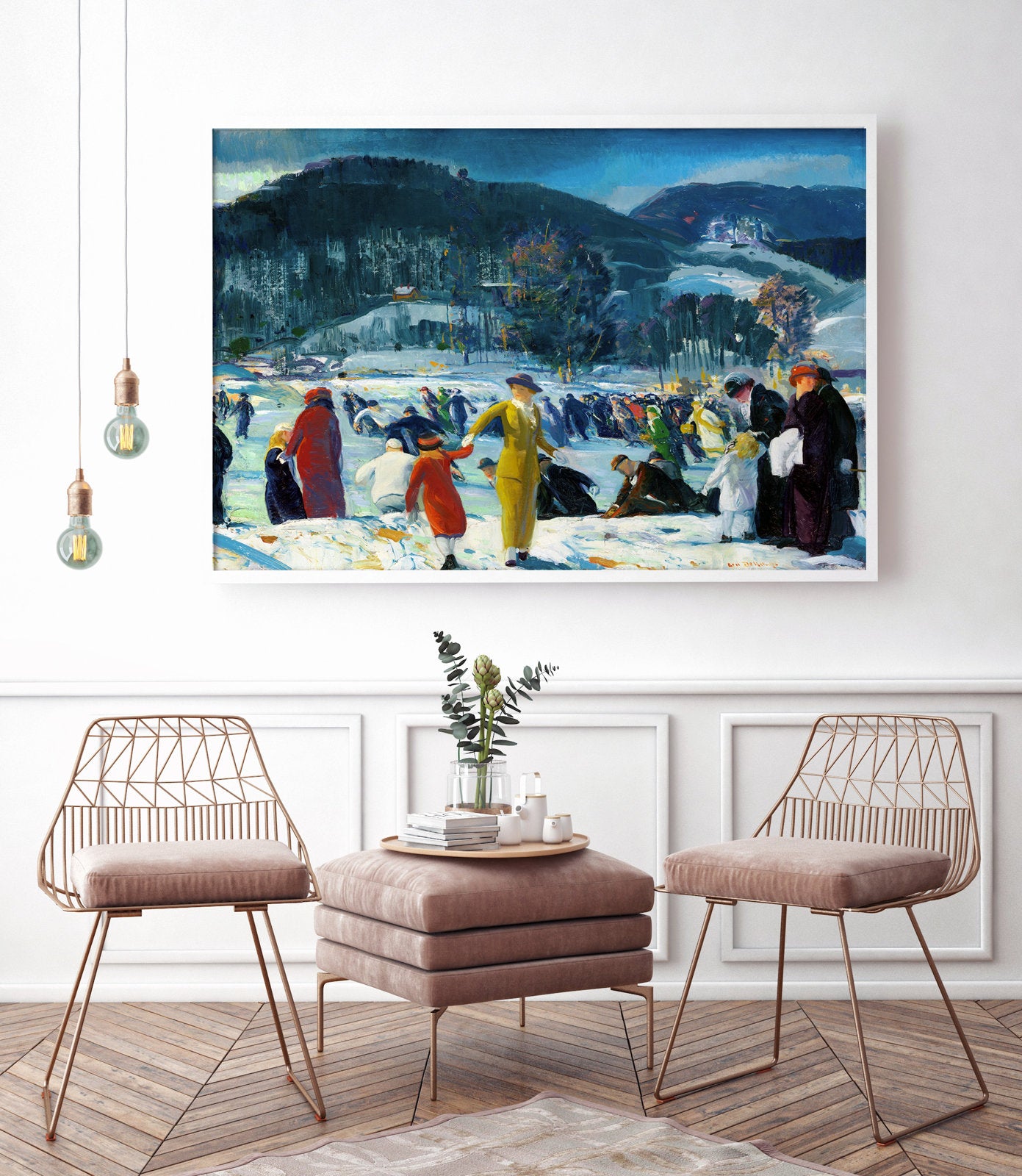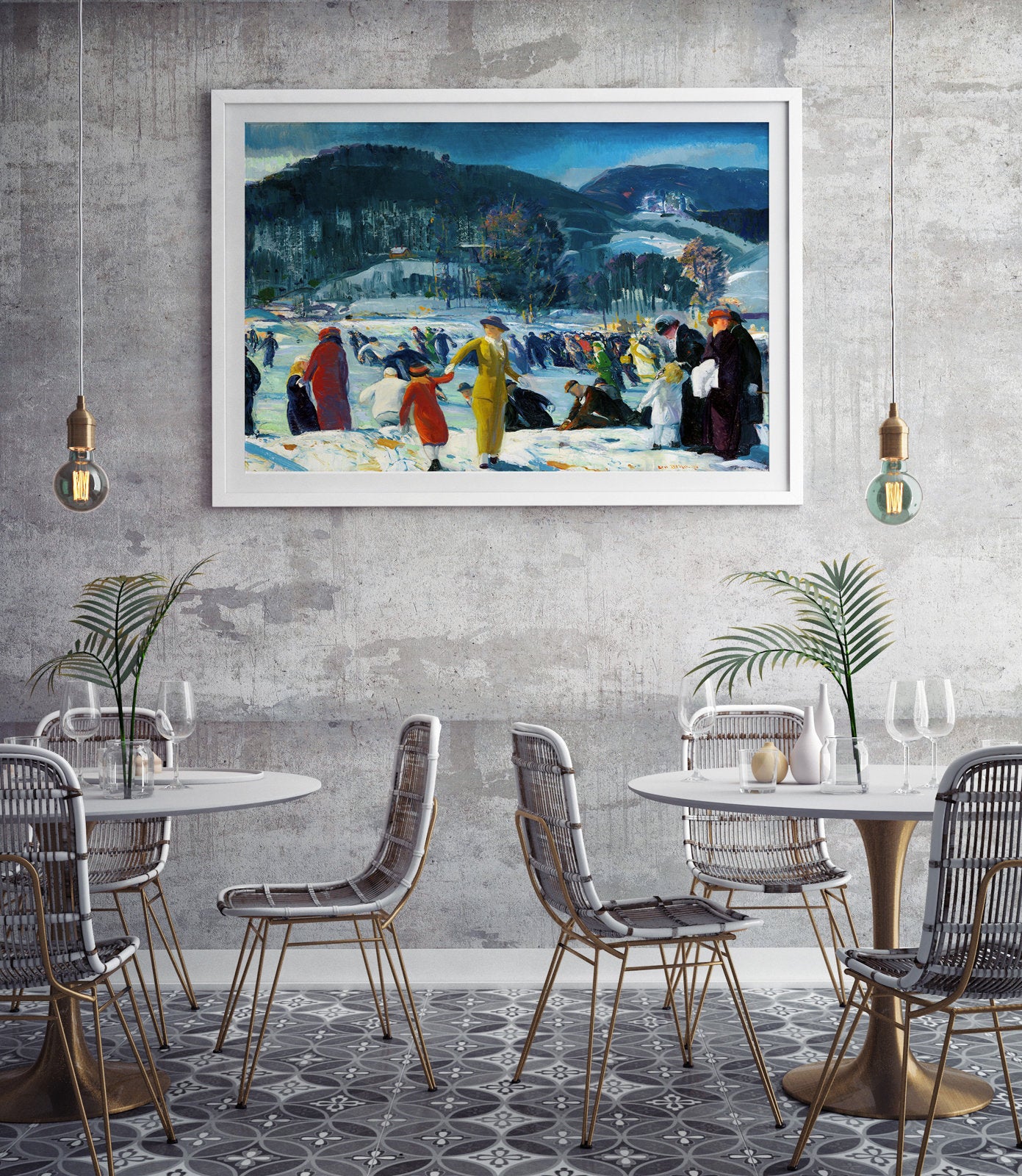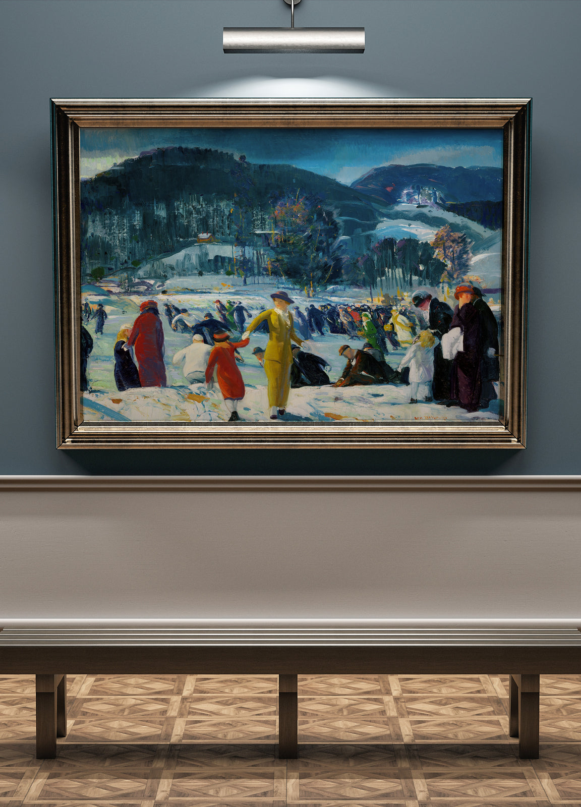 malarz. Reprezentował tzw. miejski realizm o wyraźnie antyakademickim i antyelitarnym obliczu. Malował portrety, pejzaże i szczególnie popularne sceny brutalnych walk bokserskich. Jego prace nie komentowały przedstawianych osób i wydarzeń, jedynie precyzyjnie je przedstawiały, oddając jednocześnie atmosferę miejsc i emocje ludzi. Krytycy zaliczyli go do apostołów brzydoty, potępiając dosłowność i odejście od tradycyjnych kanonów malarstwa.Załączona grafika przedstawia "Miłość do zimy" namalowany w 1914 . W styczniu 1914 roku George Bellows napisał do przyjaciela: "Nie było żadnego z moich ulubionych śniegów. Muszę zawsze malować śnieg przynajmniej raz w roku". Wkrótce potem, 13 lutego, wielka śnieżyca nawiedziła Nowy Jork, inspirując artystę do namalowania Love of Winter. Użył jasnych czerwieni, żółci i zieleni, by zintensyfikować zimową scenerię, oraz szerokich, ukośnych pociągnięć pędzla, by oddać ruch, wiatr i prędkość. Energiczna grupa łyżwiarzy i gapiów, złożona z ludzi w różnym wieku i z różnych klas społecznych, odzwierciedla zróżnicowane populacje, które korzystały z publicznych parków i możliwości spędzania wolnego czasu, jakie oferowały na początku XX wieku w Nowym Jorku.