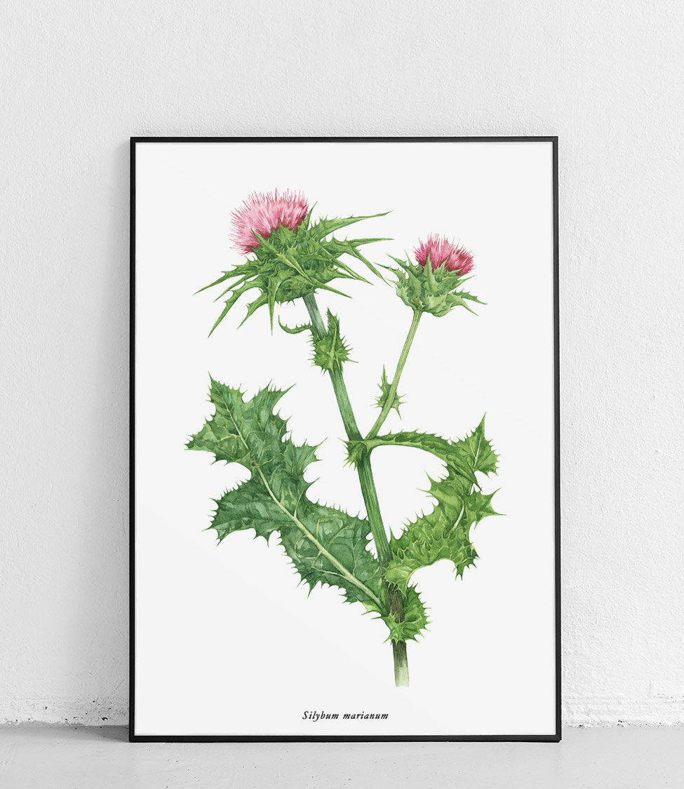 Plakat z serii "Rośliny lecznicze" przedstawiający Silybum marianum czyli ostropest plamisty. Ma szerokie zastosowanie w medycynie. Ostropest plamisty dzięki obecności sylimaryny, która stanowi kompleks kilku substancji o silnym działaniu antyoksydacyjnym. Przede wszystkim znana jest jednak z korzystnego wpływu na wątrobę i układ trawienny. Sylimaryna wykazuje działanie żółciopędne, spazmolityczne, przeciwzapalne, regeneracyjne na komórki wątrobowe, odtruwające (dlatego stosowana jest przy zatruciu muchomorem sromotnikowym oraz w alkoholowej chorobie wątroby).