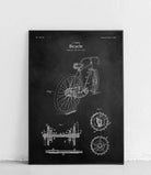Jeśli chodzi o dostępny w naszym sklepie plakat rower odnosi się do patentu Johna J. Hentza z 1899 roku. Wynalazca zaproponował wprowadzenie aż dwóch kół zębatych oraz łańcuchów połączonych wałem. Wał służył do regulacji prędkości prowadzonego roweru: łączył się z jednym lub drugim kołem zębatym. To zaskakujące – z naszej dzisiejszej perspektywy – rozwiązanie nie spotkało się jednak z powszechną aprobatą, przez co nigdy nie zostało wdrożone do masowej produkcji.