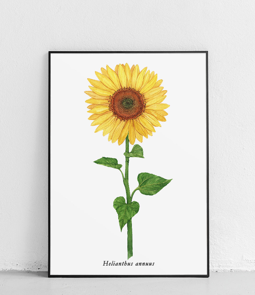 Plakat z serii "Polski ogród" przedstawiający słonecznik (Helianthus annuus). Stanowi on nieodzowny akcent krajobrazu polskiej wsi. Ten plakat, jak i cała seria, został namalowany specjalnie na nasze zamówienie. Po wykonaniu malunku, plakat jest cyfrowo skanowany, a potem drukowany na naszych najwyższej jakości papierach.
