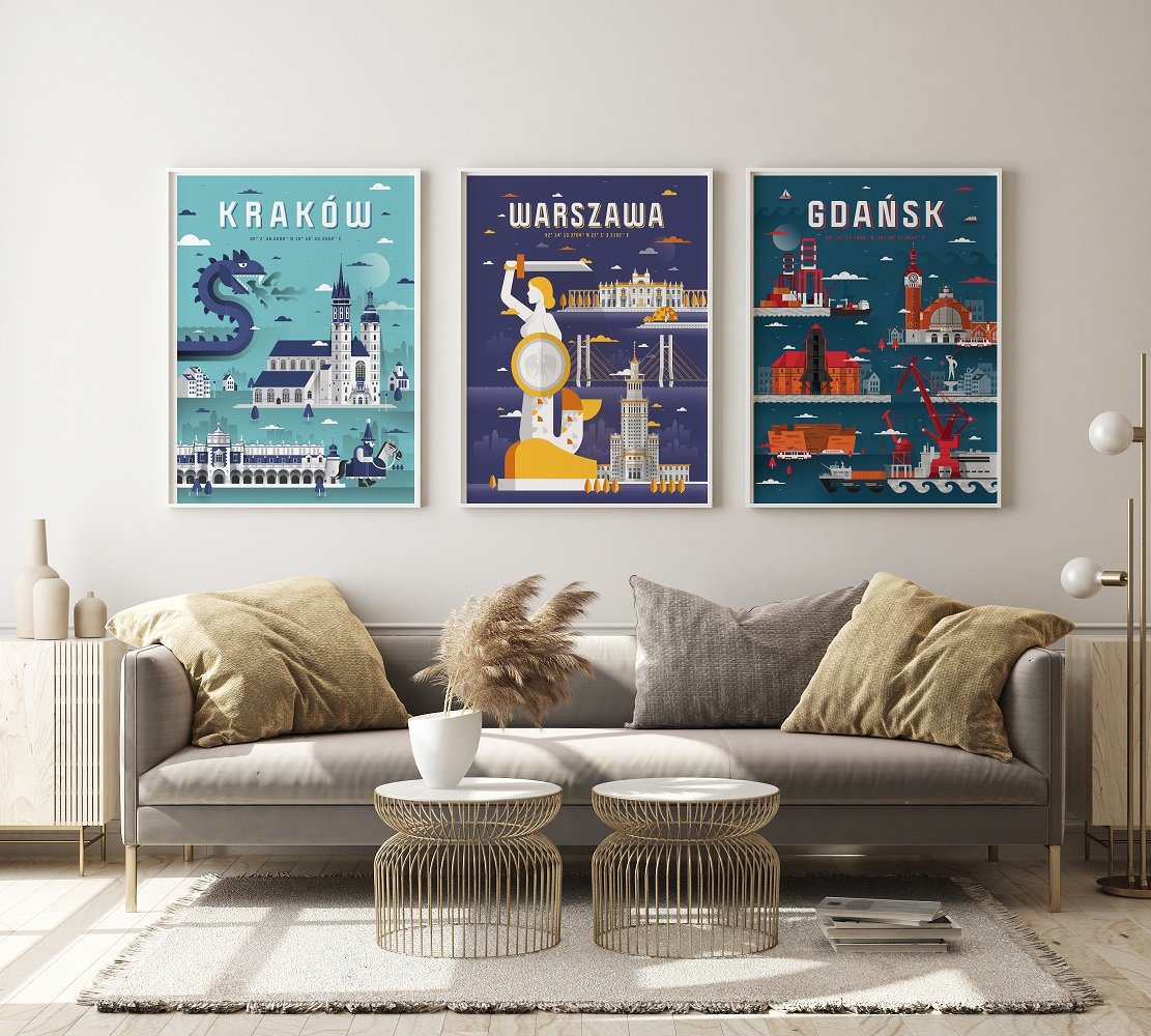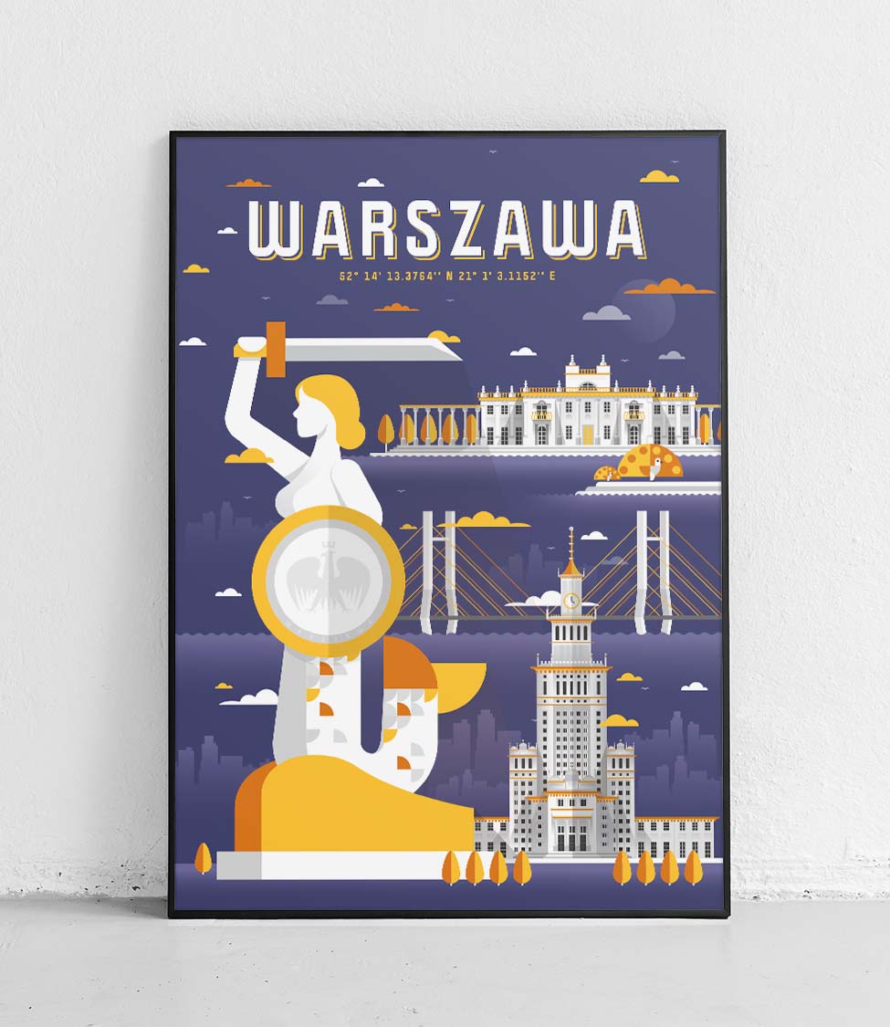 dopełnią każde wnętrze i pozwolą stworzyć w nim naprawdę ciekawy klimat. Plakat Warszawy będzie również pięknie komponował się z innymi plakatami z serii Miasta, dostępnej w naszym sklepie internetowym.W naszym sklepie dostępny jest również