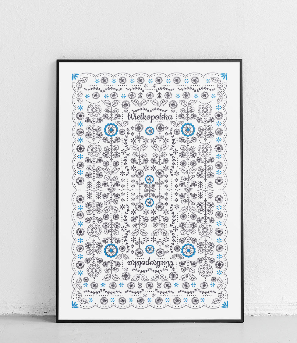 Ten plakat przedstawia Wielkopolski wzór ludowy, charakterystycznych dla folkloru szamotulskiego, który jest jedną z odmian strojów ludowych, noszonych niegdyś w Wielkopolsce. Swoim zasięgiem obejmował Ziemię Szamotulską, która swego czasu stanowiła najgęściej zaludniony obszar historycznej Wielkopolski. Strój szamotulski rozwinął się na początku XIX wieku i już wtedy stał się wyróżnikiem grupowym i ubiorem reprezentacyjnym. W porównaniu z innymi częściami Wielkopolski na Ziemi Szamotulskiej strój ludowy wykazał szczególną trwałość, noszono go bowiem także w latach międzywojennych − w czasie, gdy w innych wielkopolskich wsiach odchodził w zapomnienie.