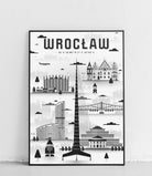 Plakat z serii "Miasta" przedstawia największe symbole Wrocławia tj.: