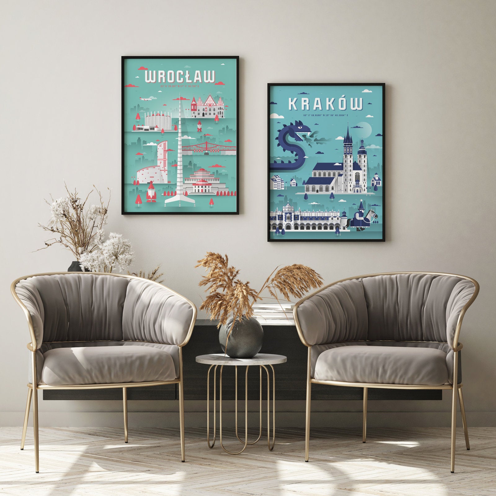 Plakat z serii "Miasta" przedstawia największe symbole Wrocławia tj.: